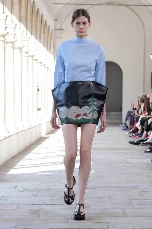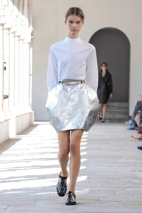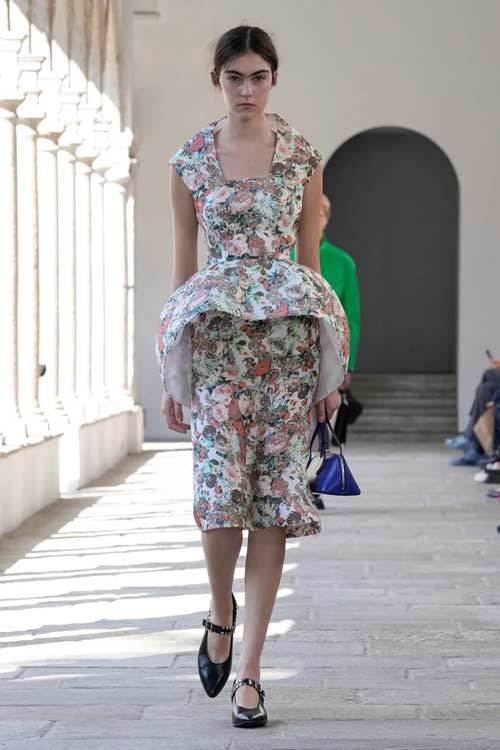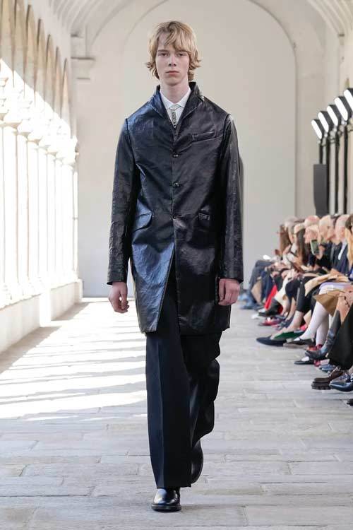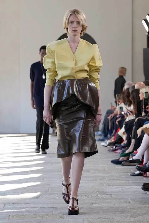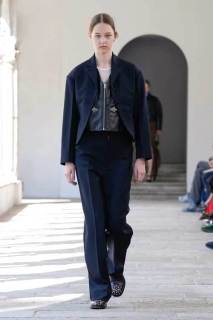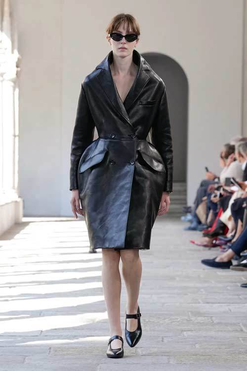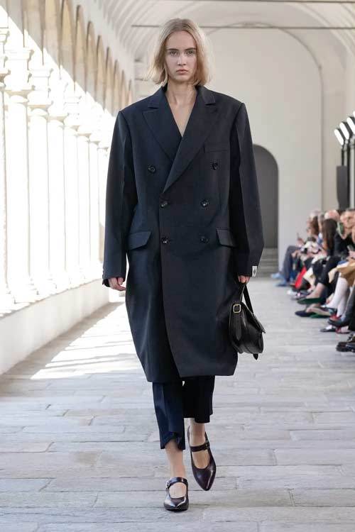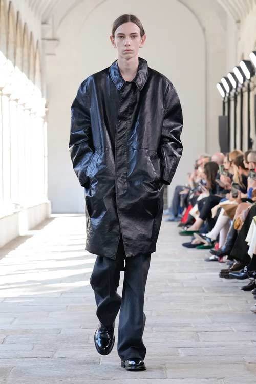 Bally, con i suoi 173 anni di storia, ha sempre incarnato l’eccellenza e la classicità, ma senza mai cadere nella banalità. La collezione di quest’anno gioca con forme scultoree, volumi ampi e proporzioni audaci, offrendo una nuova interpretazione di eleganza. Blazer dalle maxi spalle e trench in pelle si abbinano a gonne a palloncino, mentre le borchie sulle scarpe stringate aggiungono un tocco contemporaneo e grintoso.