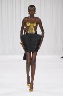 Per concludere, come non rimanere abbagliati dalle sfavillanti luminosità della Tour Eiffel e dai capi gioiello caratteristici della prossima primavera 2025? La casa di moda Balmain ha superato se stessa in questo gioco di luci e ombre.