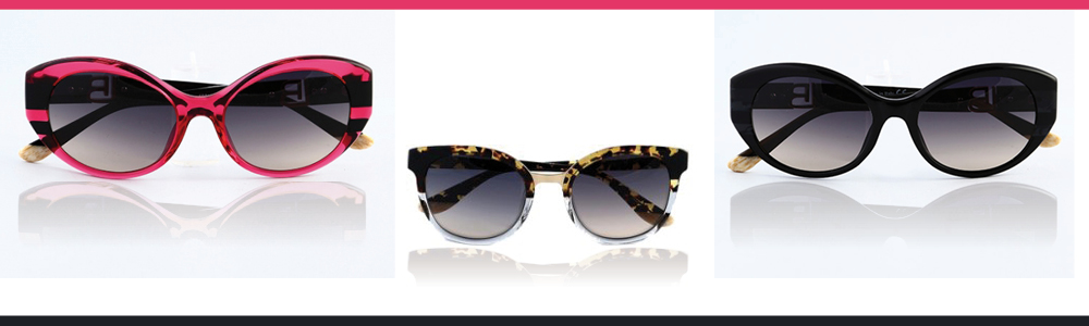 La collezione, dalle forme tonde e retrò, si declina in acetati bicolore effetto tartaruga e trasparente, nero e trasparente, fucsia e nero.