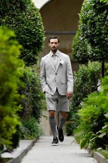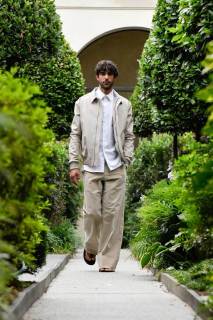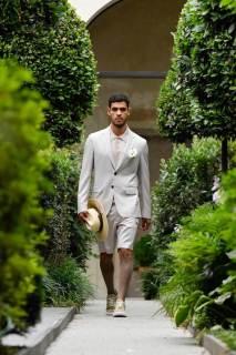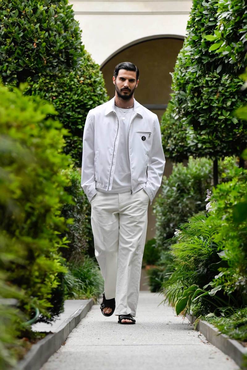 La collezione presenta capi rigorosamente Made in Italy, che spaziano da pantaloni formali a quelli più ampi, e poi ancora, a polo, bermuda, blazer; a completare i look, calzettoni e sneakers originali. La palette comprende tonalità neutre quali bianco, grigio, navy e crema. Una collezione leggera, fresca, che richiama perfettamente l’essenza d’estate anche grazie a materiali come il lino.