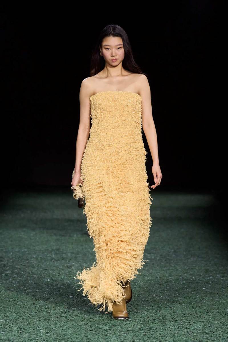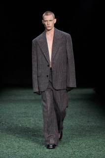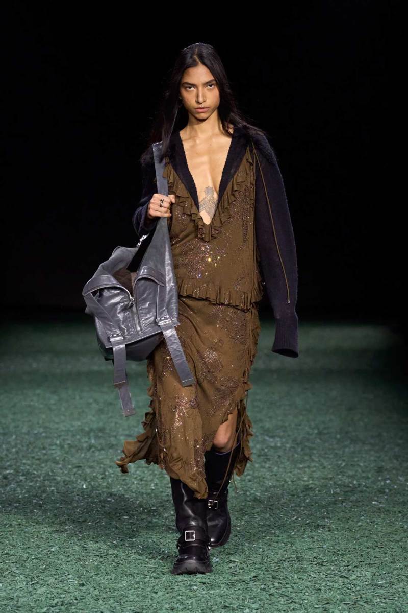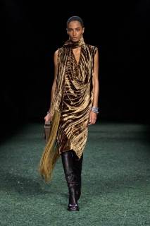 Non mancano proposte glamour per la sera e il nightwear, tra cui abiti frangiati luccicanti che creano un grande senso di movimento, i vestiti ornati di strass e gli abiti in ciniglia. L’idea è quella di presentare un guardaroba che pensa sia all’aspetto estetico che a quello funzionale. Viene portata in passerella un’eleganza classica che si arricchisce di elementi moderni e innovativi, e che strizza comunque l’occhio alla praticità e versatilità. In passerella, alcune celebrities di spicco: Naomi Campbell, Karen Elson e Lennon Gallagher.