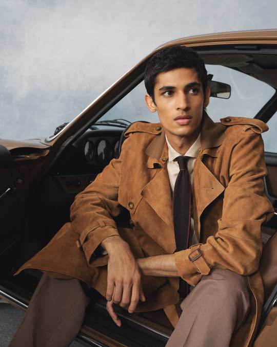 Lo spirito on-the-road si respira anche negli accessori: loafers morbidi come guanti da guida, sneakers in suede leggero, beanie in crochet. Borse in pelle lavorata e nodi a contrasto richiamano ancora una volta i dettagli delle mitiche auto d’epoca.