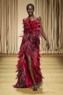 Una musica più sensuale ed accesa decreta la fine della sfilata, con abiti dotati di piume e di striature accese, decisamente in contrasto con la delicatezza e la sobrietà del resto della collezione.