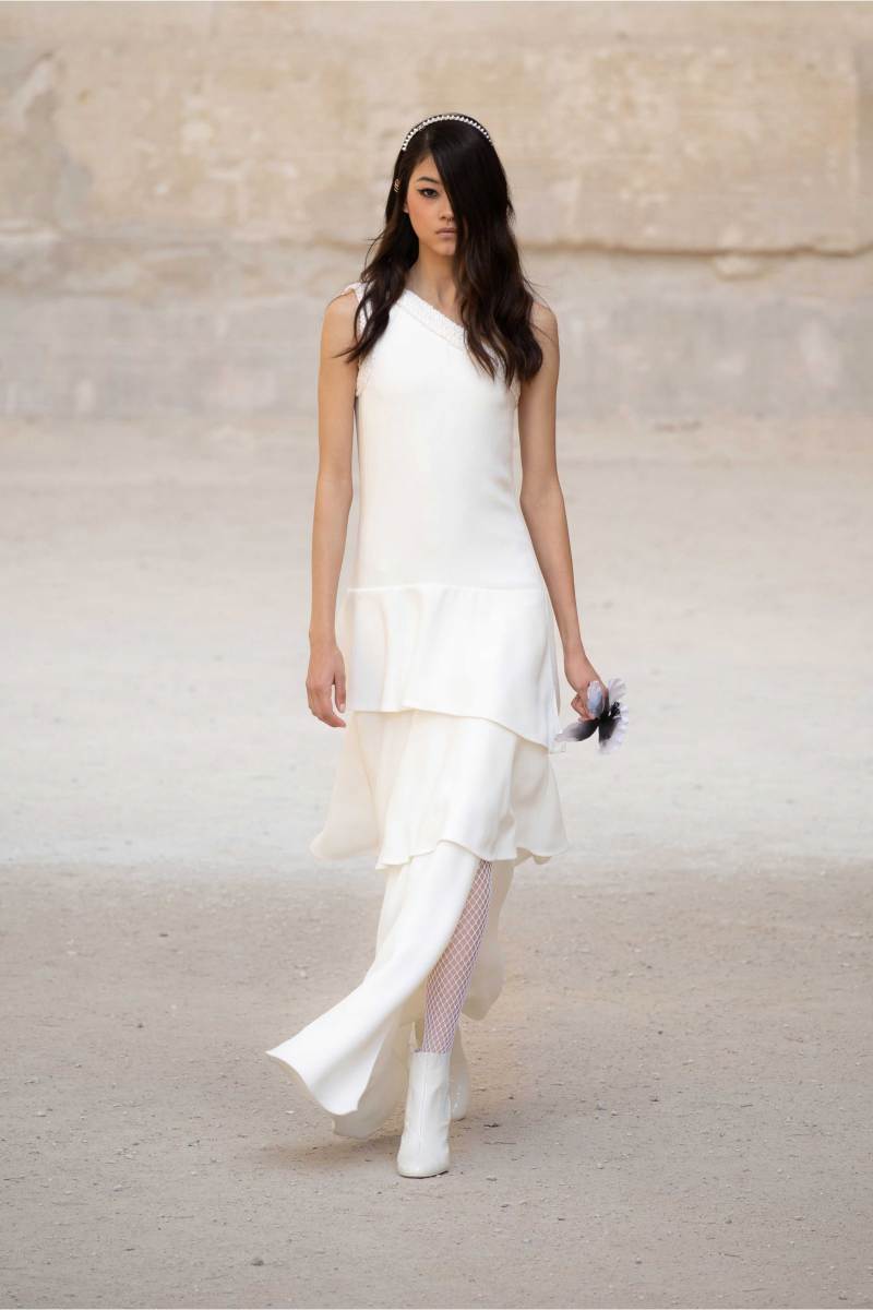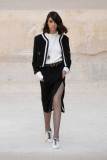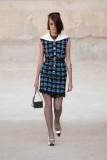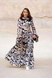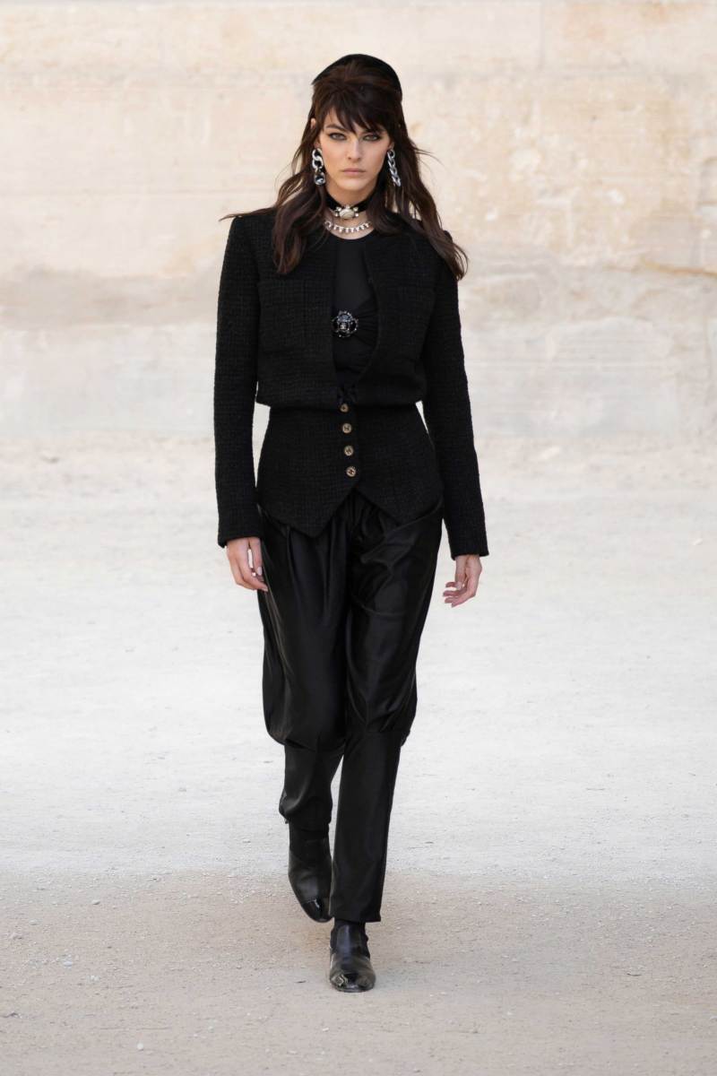 In bilico tra bohemian e punk, Virginie Viard porta in passerella una collezione che, riattraversando il viale dei ricordi dell’amicizia tra Coco e Cocteau, mixa con abilità il rock degli anni Sessanta e la tendenza allo stile punk tipica degli Ottanta. Tra grandi classici e nuove proposte, la collezione è un viaggio tra passato e presente, caratterizzata da una bicolore ben definita, nero intenso e bianco brillante. Le modelle sfilano con pezzi iconici, come le giacche in tweed Chanel bianco o le bluse a righe bretoni tanto amate da Coco; o ancora, sofisticati caftani stampati dove il leitmotiv floreale, oltre alla sua classica natura, si declina in una versione più astratta e grafica. Non mancano chemisier ricamate, abiti leggiadri ma strutturati, tailleur dal taglio classico e silhouette pulite.