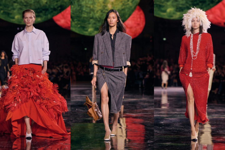 Virginie Viard ha intrecciato colori vivaci, come il rosa, il turchese e il viola nei toni autunnali, inserendo diversi accessori. “Stavo pensando all’Inghilterra degli anni ’60 e alle copertine dei dischi molto colorate”, ha raccontato. All’interno della collezione troviamo degli abiti corti di tweed che hanno attinto a quell’energia, così come un paio di sottovesti in pelle.
