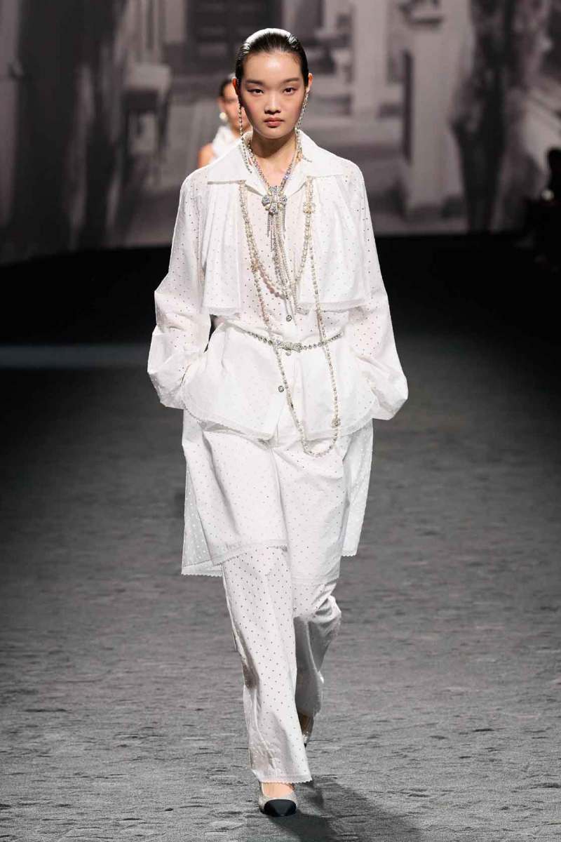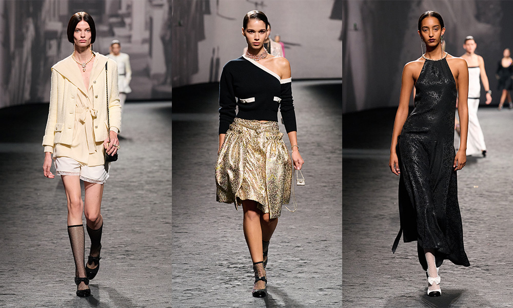 Sull’impronta della “nouvelle vague”, la Chanel Primavera/Estate 2023 ha calcato le passerelle della Paris Fashion Week 2022. Virginie Viard, direttrice creativa del brand dal 2019, ha ideato una collezione per donne che desiderano una “allure” da film. In particolare da “L’Année Dernière à Marienbad” (1961) di Alain Resnais, di cui Coco disegnò alcuni costumi e a cui la Viard si è ispirata. Parliamo quindi di un mood vintage (anni Sessanta) e quasi onirico. Una donna in bianco e nero come le stampe sul look di apertura, lipstick sulle labbra e accessori romantici.