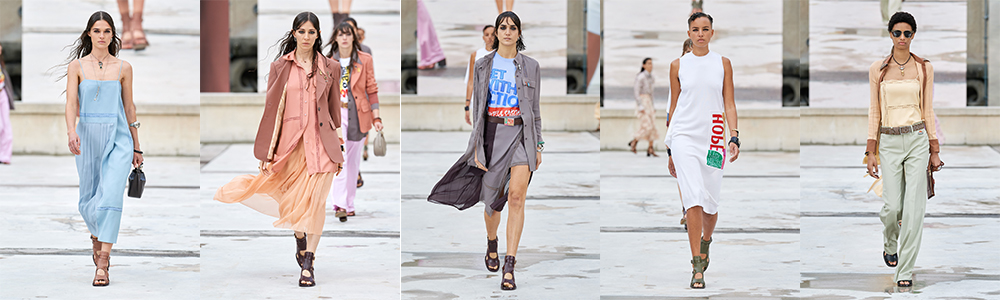 A season in hope è il nome della collezione firmata Chloé, la cui presentazione si è divisa in due parti. Inizialmente le modelle sono state riprese singolarmente in diversi luoghi della città, mentre camminavano, si guardavano intorno o chiacchieravano tra loro. La telecamera mostra una storia di incontri, di sorrisi, di spazi aperti, di quotidianità ritrovata. Questo ha permesso inoltre di notare la semplicità dei capi, che possono essere indossati ovunque e in qualsiasi occasione, pur mantenendo la loro inconfondibile eleganza. Nella seconda parte, invece, le modelle si sono riunite e hanno sfilato nel Palais de Tokyo, importante polo di arte contemporanea. La collezione, dai toni tenui e delicati color pastello, è composta da capi ready-to-wear abbinati ad una vasta gamma di accessori, tra cui sandali, borse, occhiali e cinture.