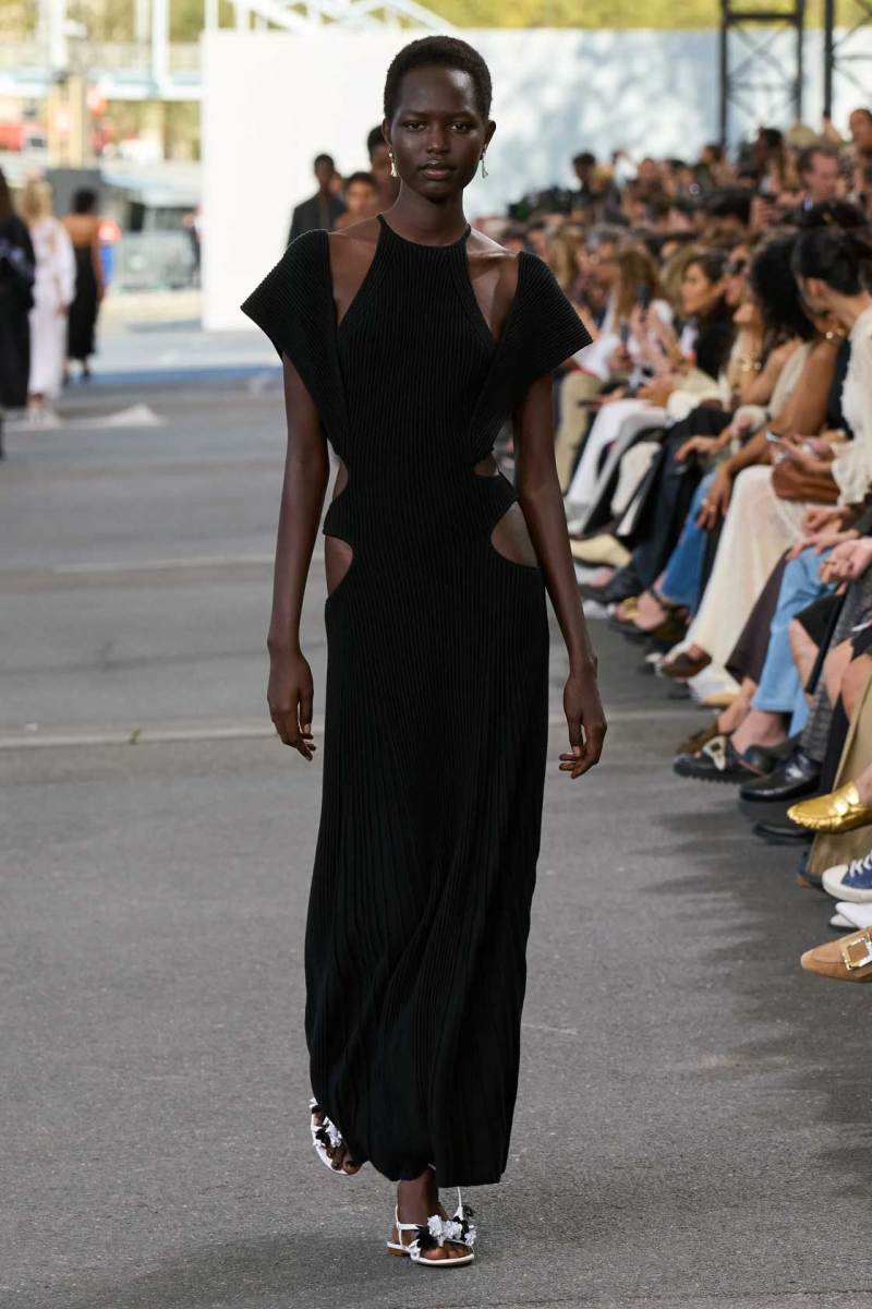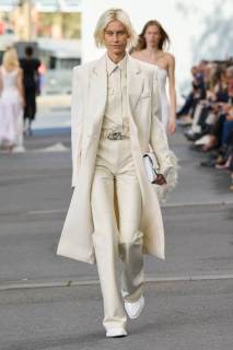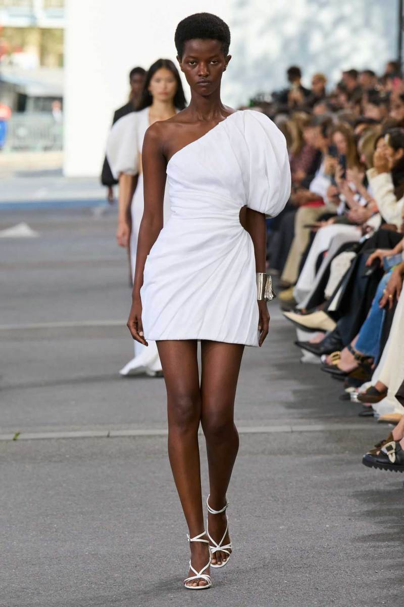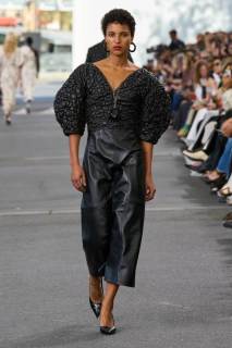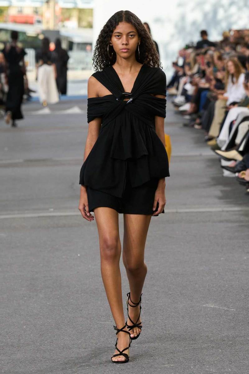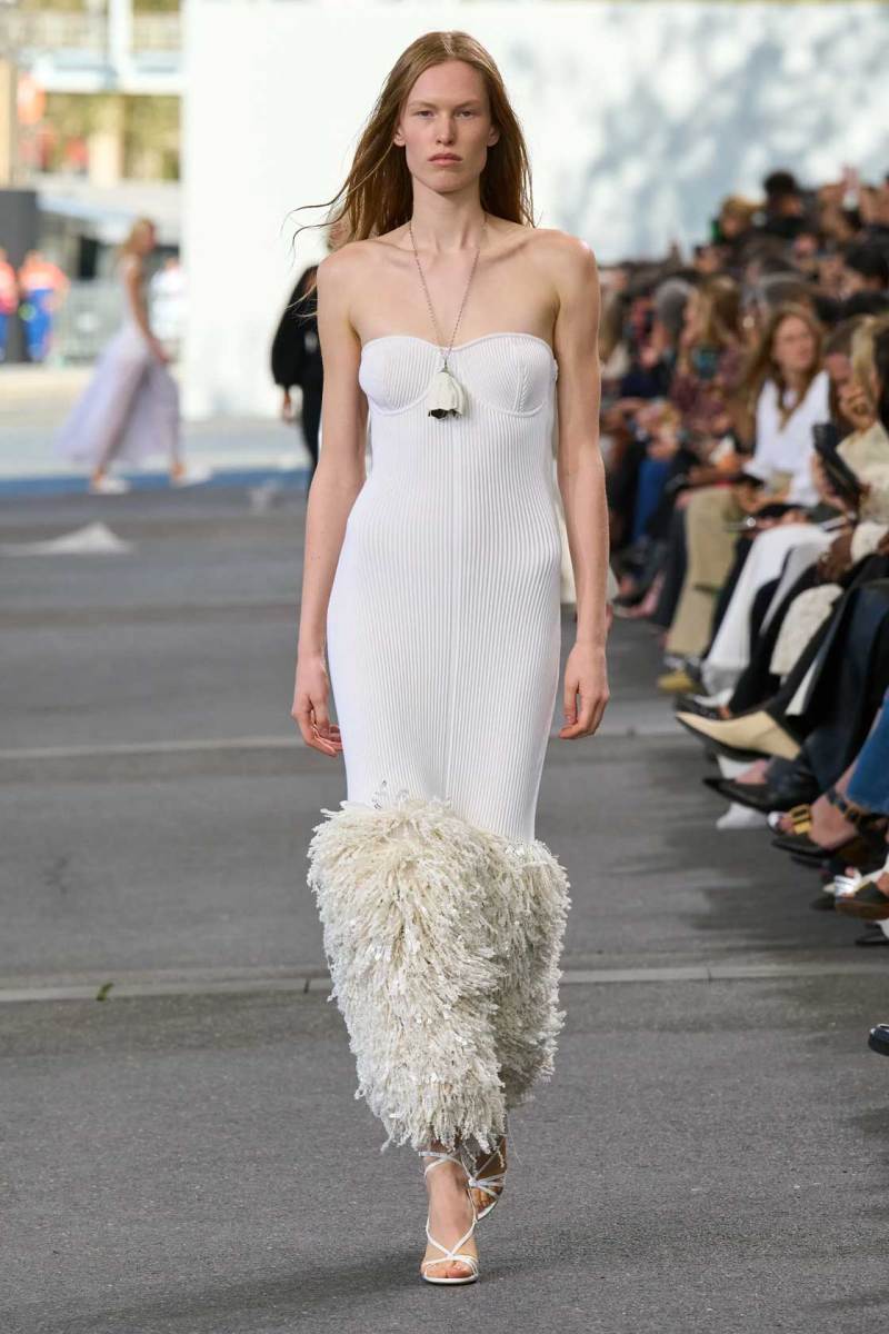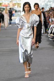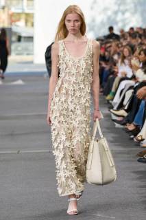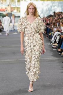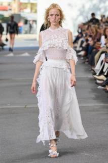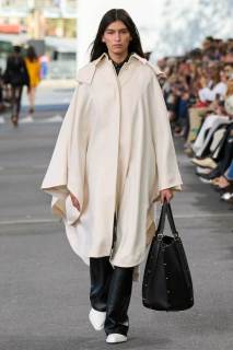La sfilata firmata Chloè si è aperta con una serie di abiti monospalla con plissettature attorcigliate a forma di conchiglia. A seguire, cappotti con maniche a prosciutto, duster-coat e cappe dal passo casual; e ancora, suit di nappa glacè, blazer total white, una giacca in pelle nera, stivali da gaucho a tacco concavo e bracciali a palline a forma di conchiglia. Non mancano proposte raffinate per le occasioni serali; vengono presentati anche vestiti da cocktail in pelle e un abito di velluto ocra.