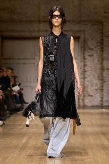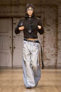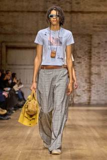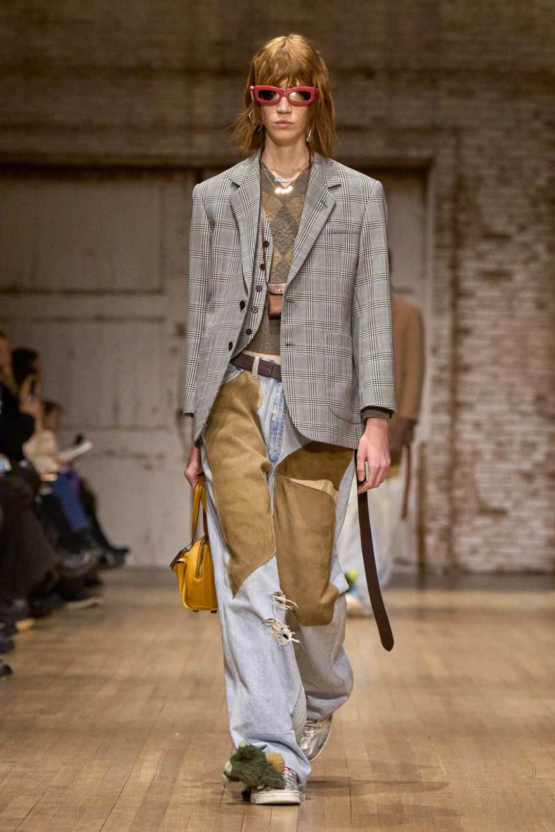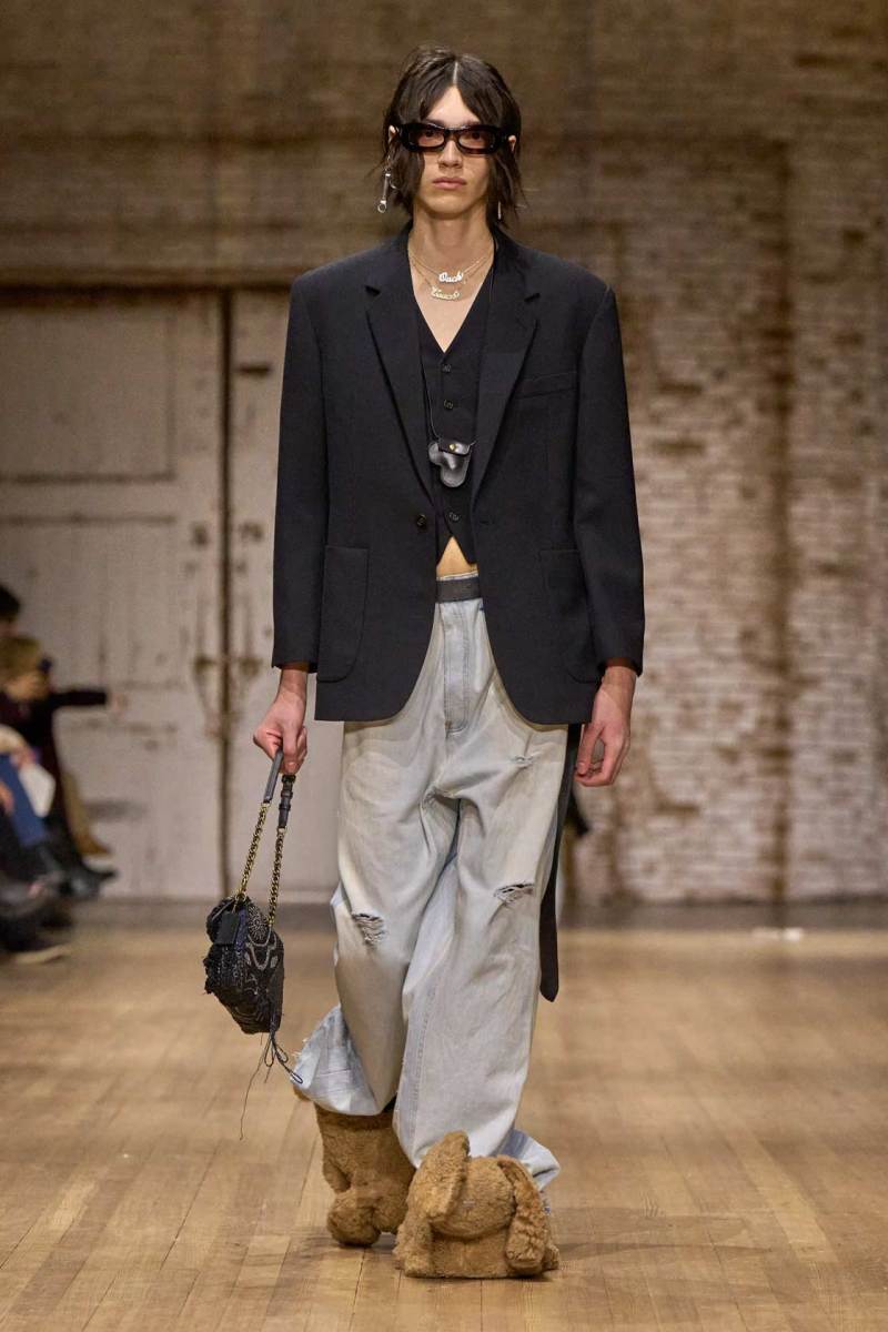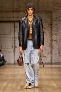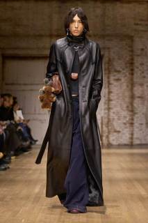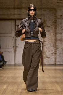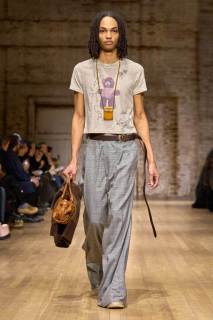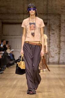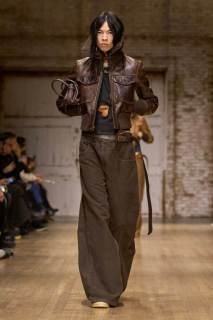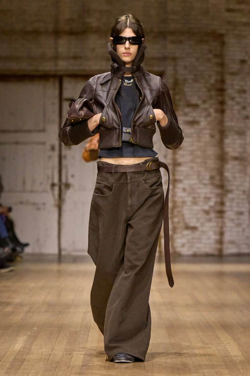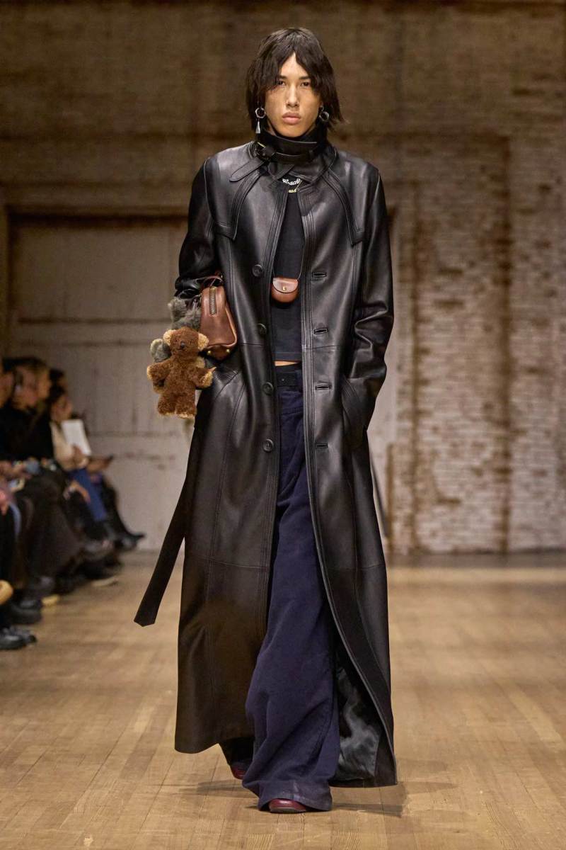 La collezione riflette un perfetto equilibrio tra passato e presente, con riferimenti agli anni 2000 e una rivisitazione dei codici classici di Coach. Le silhouette sono un gioco di contrasti: pantaloni oversize e ultra-baggy si accostano a maglieria e capispalla dalle proporzioni più ridotte, mentre una palette cromatica sofisticata alterna toni caldi di cuoio, cioccolato e nero sbiadito a dettagli più eccentrici, come maglie metalliche, accessori colorati, perline e stampe leopardate.