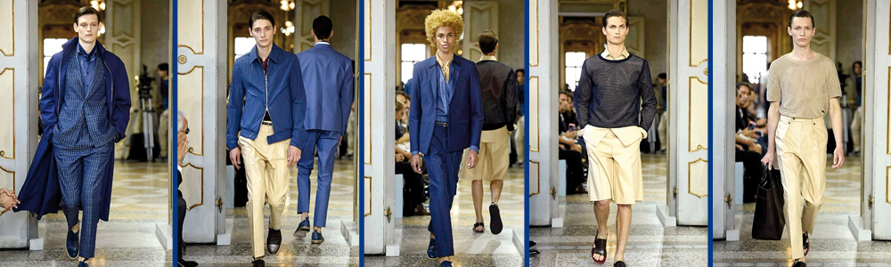 I volumi sono sempre più nuovi e studiati per adattarsi e valorizzare qualsivoglia fisicità. Possiamo affermare che la vita alta è la protagonista indiscussa della linea, ad enfatizzarla Corneliani propone lo stringi vita in pelle, accessorio must per i più avventurosi. I pantaloni accolgono delle pinces significative quasi a ricordare l’uomo arcaico che veste il suo sarong.