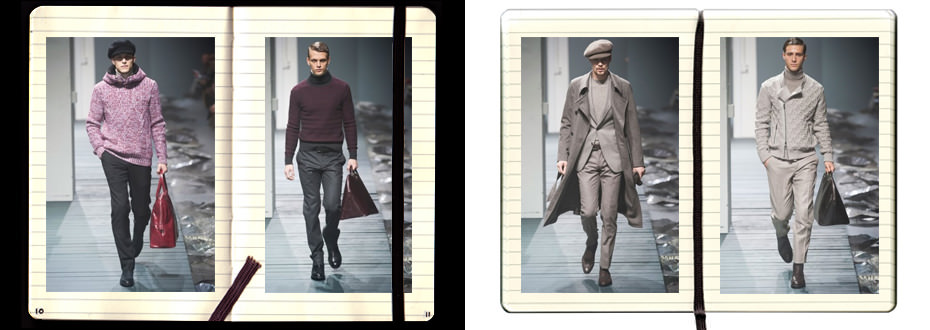 Cappotti in alpaca stretti in vita dall’aria vagamente rigorosa nascondono abiti affusolati che pennellano un fisico asciutto ma sportivo. Pantaloni skinny e giacche morbide allungate.