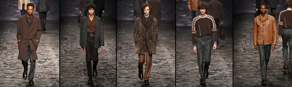 È un uomo metropolitano a cavalcare la passerella di Corneliani, per la presentazione della collezione Autunno/Inverno 2016-17; deciso e sicuro di sé, in un’ambientazione mistica che ci riporta tra i vicoli delle grandi città come Milano, Londra, New York. Un uomo adatto alla metropoli che veste i colori dell’autunno come il marrone in tutte le sue sfumature, il nero, il grigio piombo, il kaki e il blu.