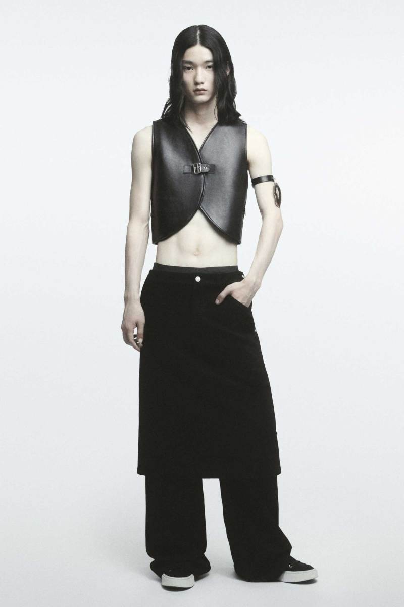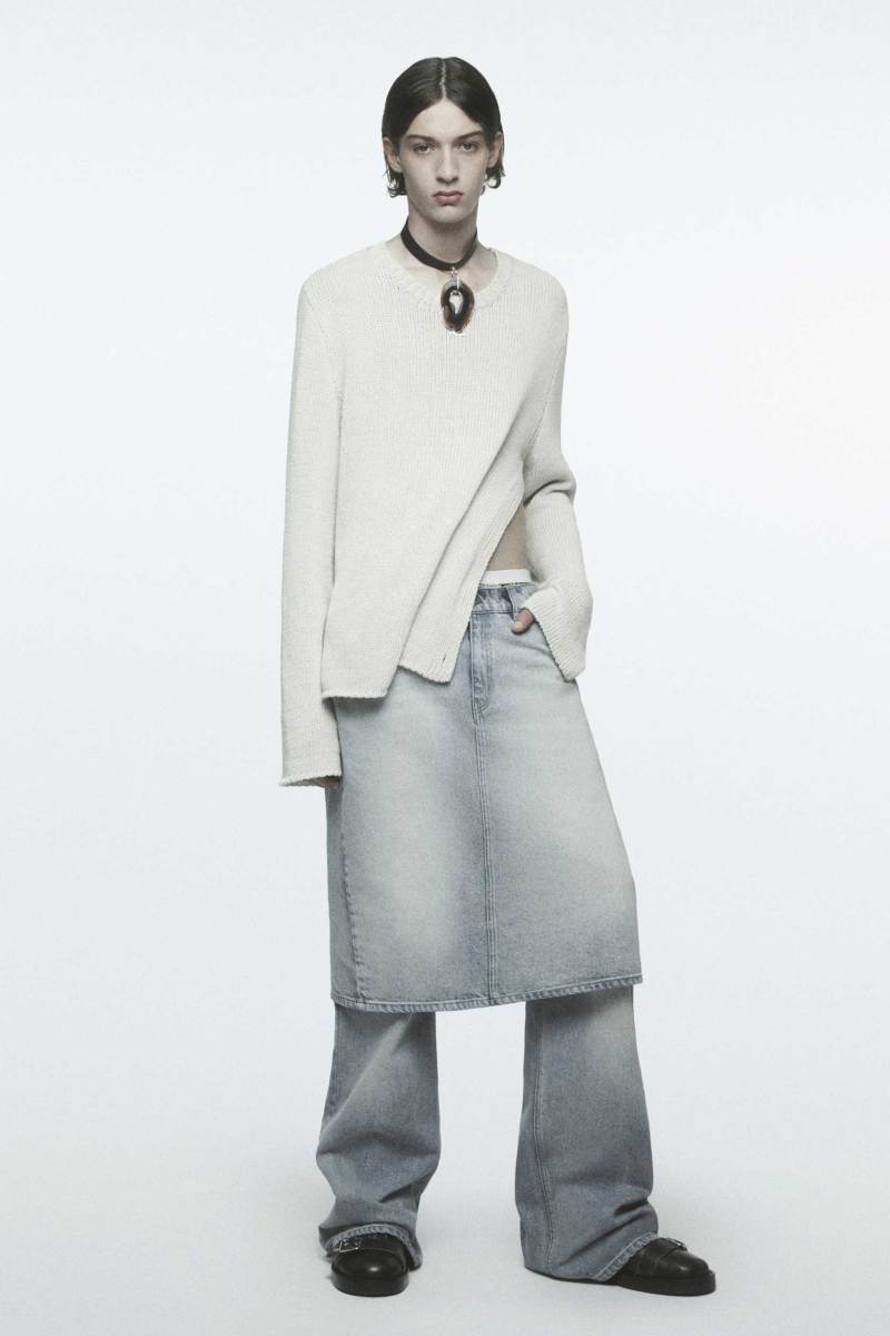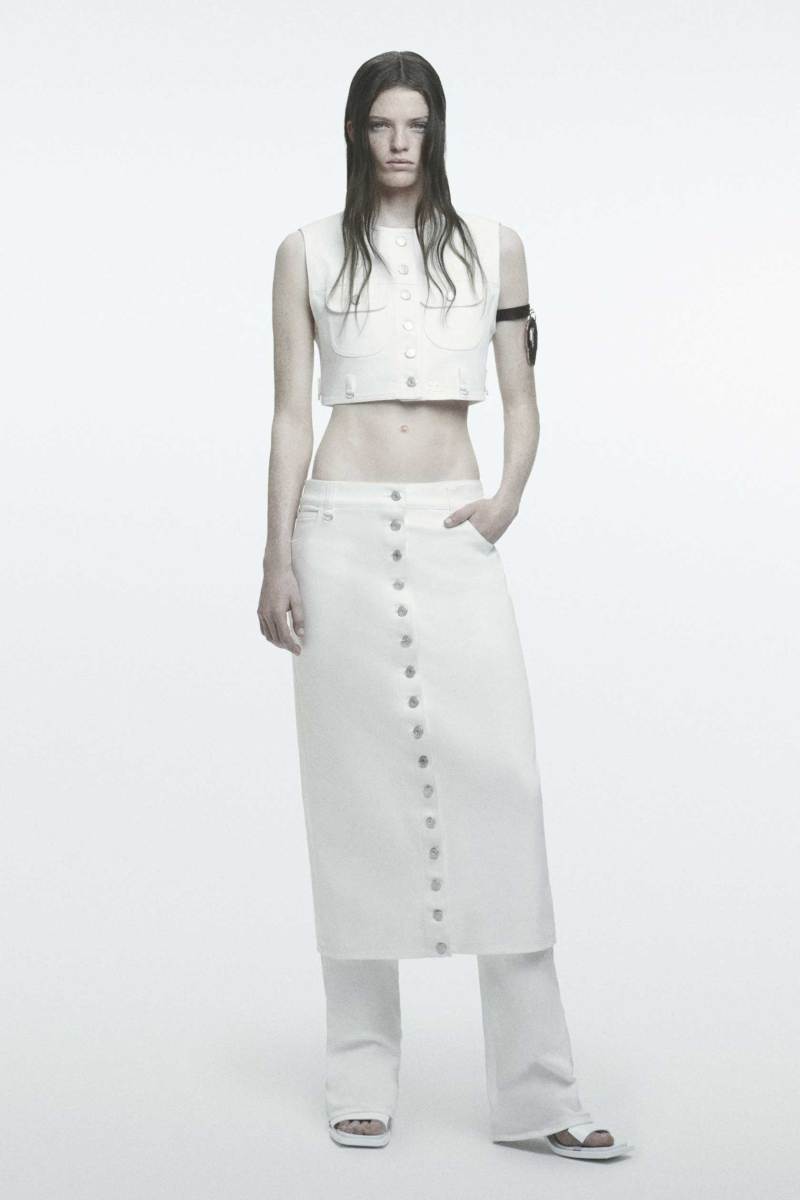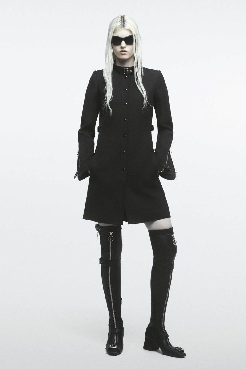 Riprendendo capi delle scorse collezioni e ripensandoli in chiave diversa, come il pantalone Bootcut in una versione dal taglio più rilassato grazie allo spacco sulla caviglia, la collezione, strettamente legata alle precedenti nella visione del designer, è in perfetto stile Courrèges.