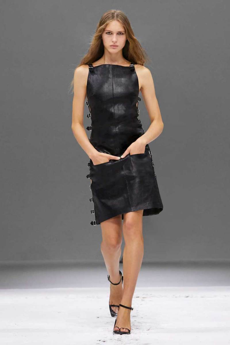 Shorts e vestiti semplici ma sexy, pantaloni in pelle con stampa coccodrillo, blazer sciancrati e giacche da motociclista sono i capi presentati in passerella. Di Felice propone un design futuristico; non a caso chiude lo show con un poncho metallizzato che richiama un’epoca ultra-moderna.
