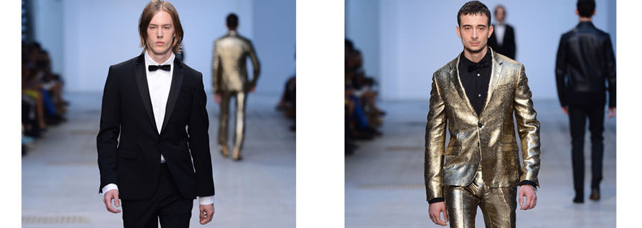 Immancabile la pelle, “la sua pelle”, mai scomparsa dalle collezioni COSTUME NATIONAL, per pantaloni skinny e chiodo. Capo icona della collezione è il coraggioso tuxedo d’oro, che cattura spavaldo tutti i flash dalla passerella. Infine, per un amante della musica come Ennio Capasa, curatissima la colonna sonora scelta per la “runway” che si chiude sulle note di Johnny Cash che arrangia splendidamente “Personal Jesus” dei Depeche Mode.