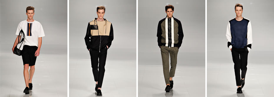 Vince lo sportswear, per un mood completamente rilassato. In passerella abbondano le felpe con cappuccio dotate di zip asimmetriche che gli attribuiscono un senso di movimento, pull lavorati a coste con inserti patchwork o listini in nappa a contrasto, e ancora bomber e giubbini in pelle bicolor indossati con pantaloni slim alla caviglia e bermuda dalla linea pulita.