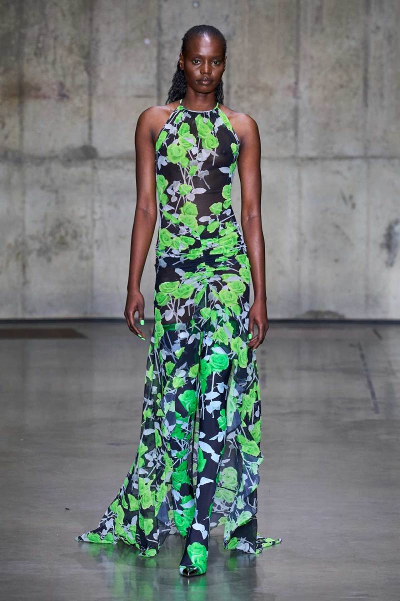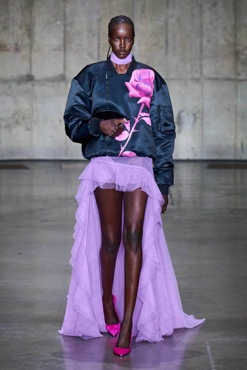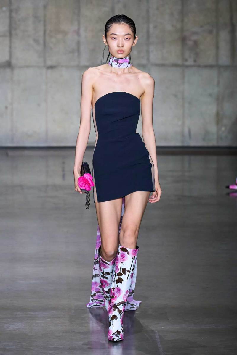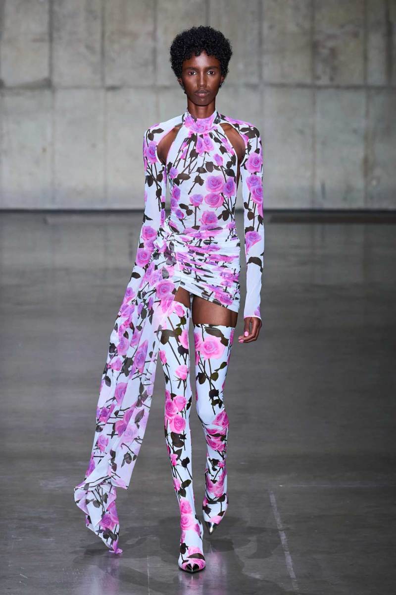 L’ispirazione della collezione PE 2024 firmata David Koma proviene dall’immagine della giovane Elisabetta II su una motocicletta durante il suo servizio militare negli anni Quaranta. La collezione propone una serie di abiti e minidress che richiamano l’iconica rosa inglese. Ad adornarli, motivi floreali in silhouette, elementi decorativi e stampe e ispirazioni legate al mondo bikers. La palette di colori spazia dai verdi agli arancioni, dai rosa ai lilla e ai colori neutri, come il bianco e il nero. Il guardaroba iperfemminile si mescola con armonia agli elementi da motociclista. Ad arricchire il tutto, una linea sofisticata di borse dotate di quattro shapes differenti.