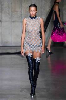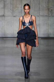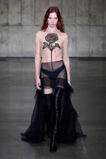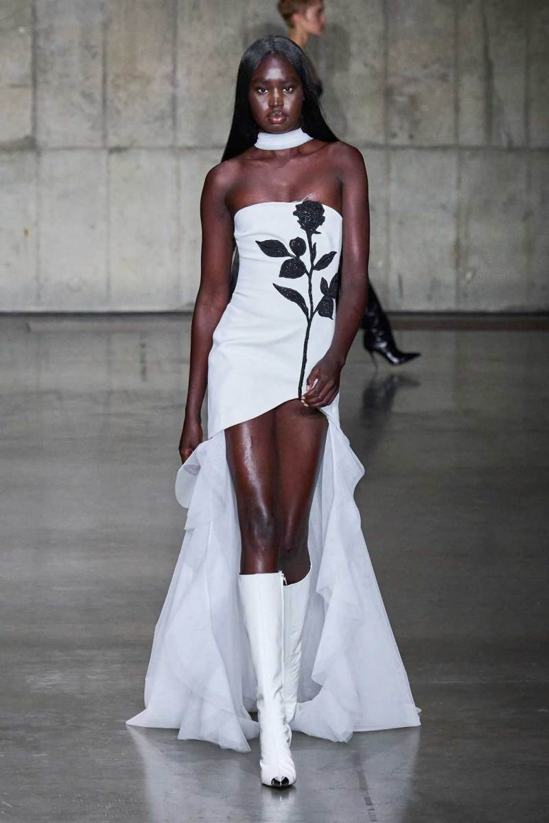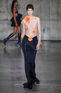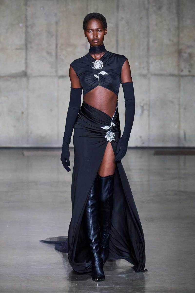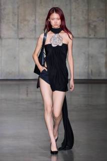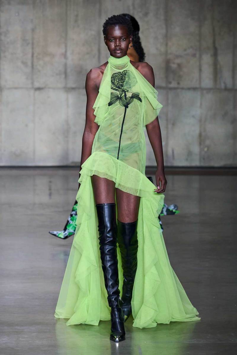 L’ispirazione della collezione PE 2024 firmata David Koma proviene dall’immagine della giovane Elisabetta II su una motocicletta durante il suo servizio militare negli anni Quaranta. La collezione propone una serie di abiti e minidress che richiamano l’iconica rosa inglese. Ad adornarli, motivi floreali in silhouette, elementi decorativi e stampe e ispirazioni legate al mondo bikers. La palette di colori spazia dai verdi agli arancioni, dai rosa ai lilla e ai colori neutri, come il bianco e il nero. Il guardaroba iperfemminile si mescola con armonia agli elementi da motociclista. Ad arricchire il tutto, una linea sofisticata di borse dotate di quattro shapes differenti.