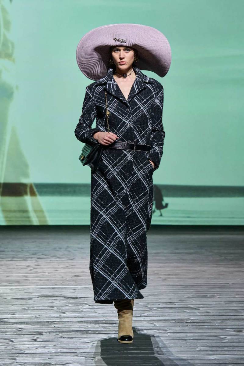 I cappelli da spiaggia, gli abiti a balze e i cappotti con cinture hanno dominato la sfilata, omaggiando il leggendario luogo dove Gabrielle Chanel ha incontrato il suo destino.