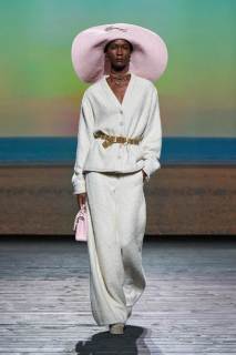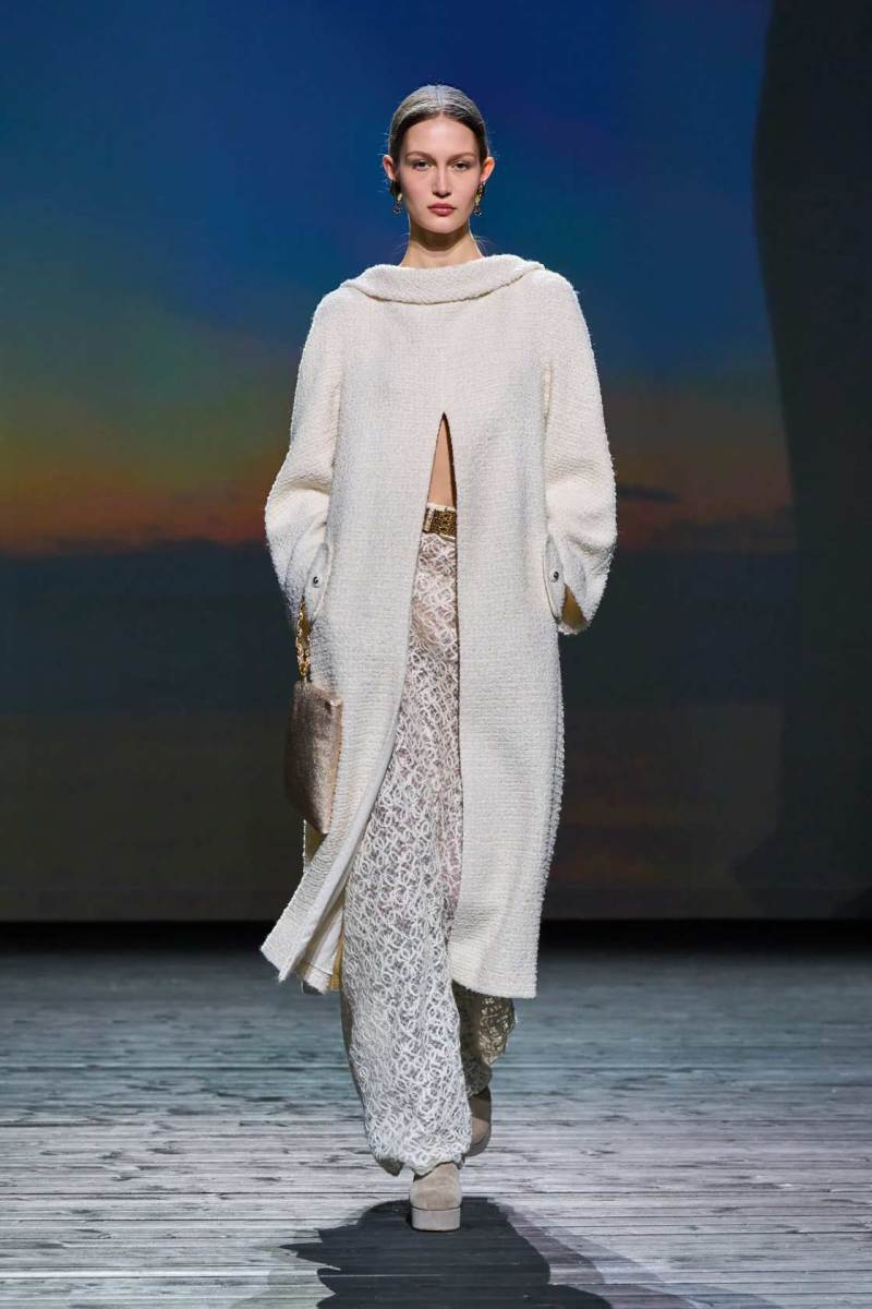 La direttrice artistica, Virginie Viard, ha spiegato che la collezione autunno/inverno 2024-25 vuole rendere omaggio a Deauville, dove Chanel aprì la sua prima boutique nel 1912. I grandi cappelli da spiaggia sono stati i protagonisti in passerella, indossati dalle modelle in bianco immacolato o rosa cipria, talvolta con gioielli d’argento incastonati per un tocco elegante.