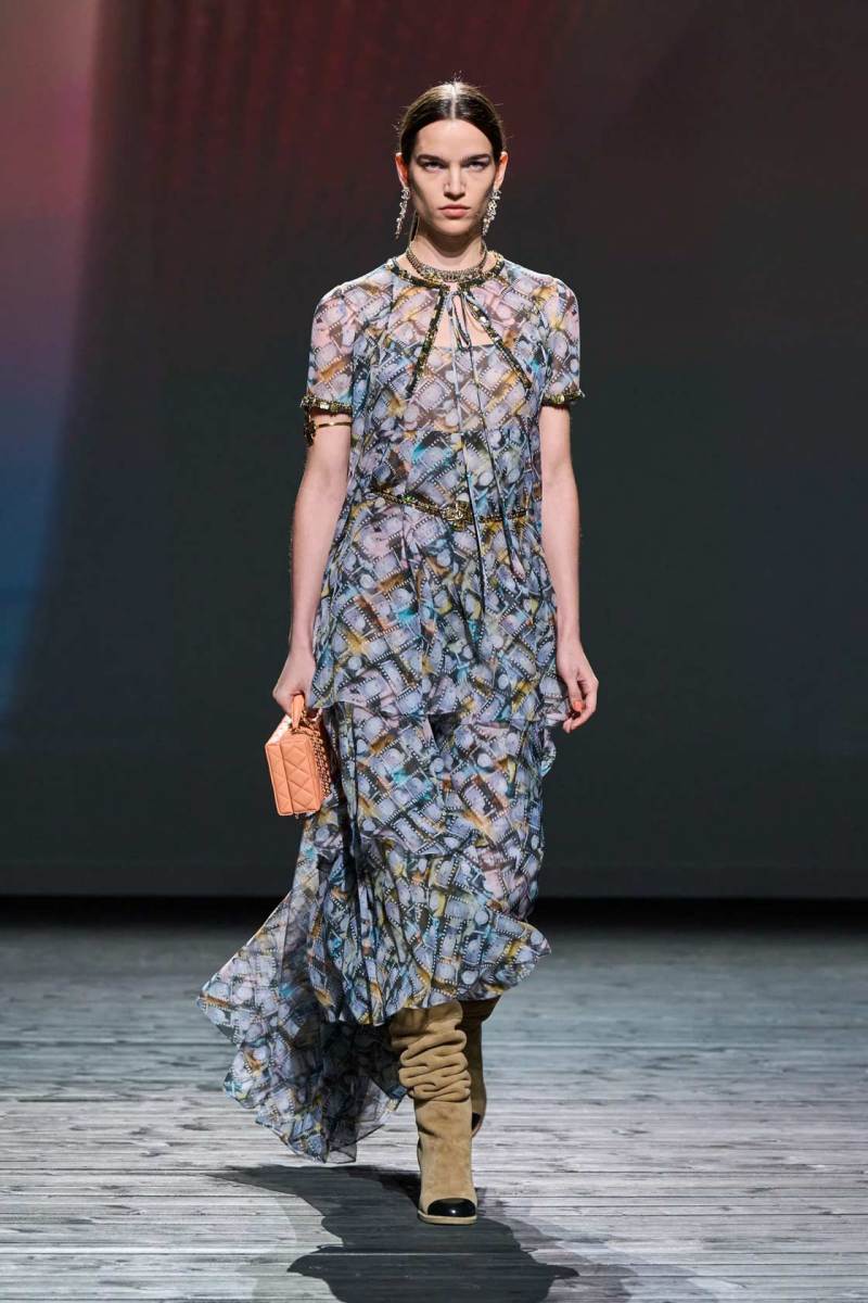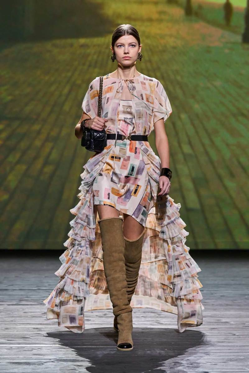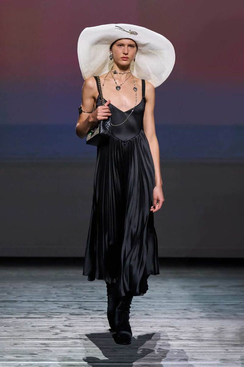 La collezione si chiude con abiti scivolati e fluidi che evocano il cambiamento rivoluzionario del passato, immaginando le donne del secolo scorso lungo il lungomare “Les Planches”. Con la sua collezione, Chanel continua a incarnare l’eleganza senza tempo e la rivoluzione della moda.