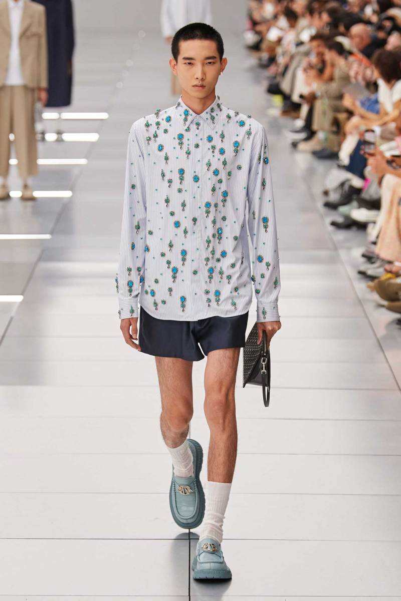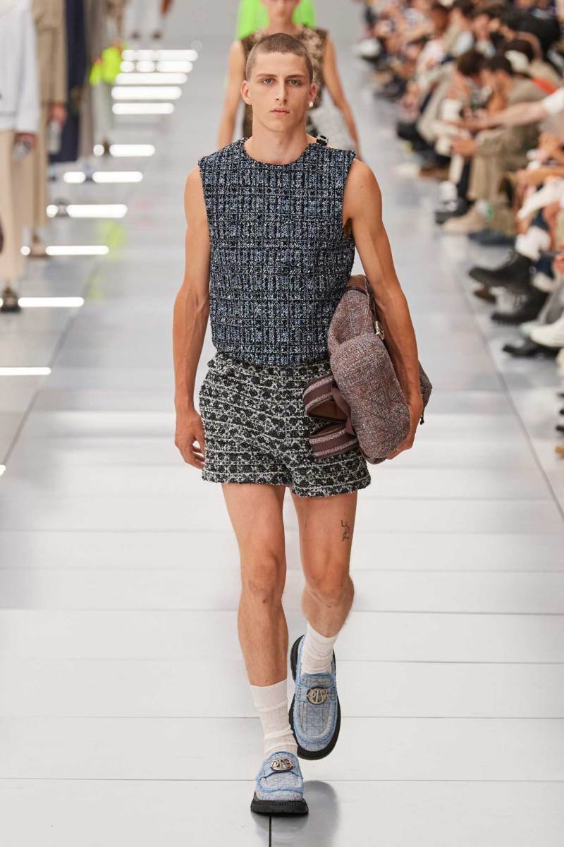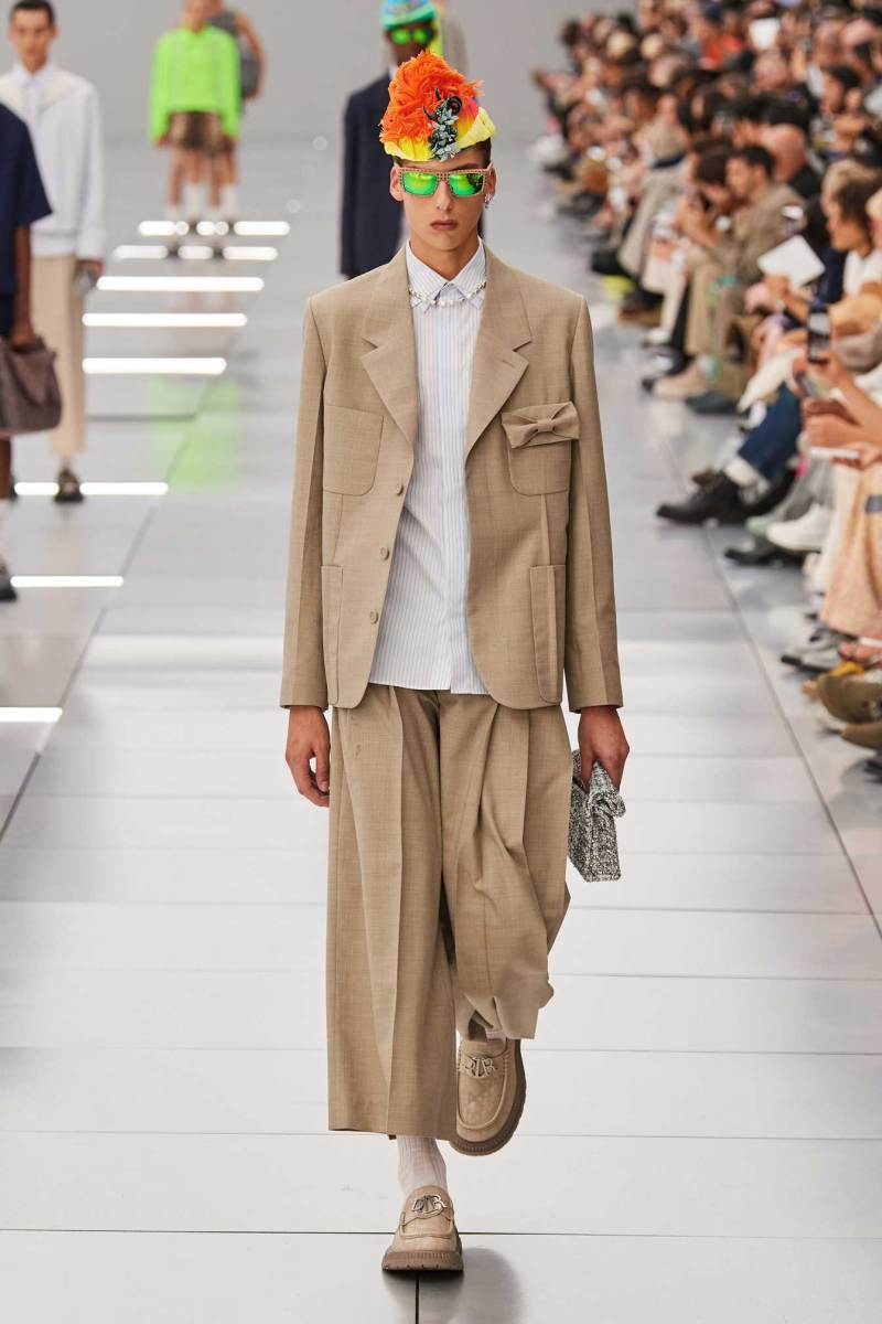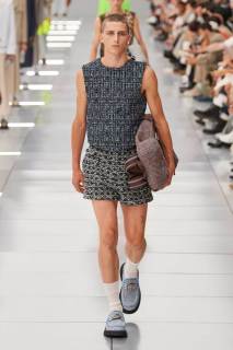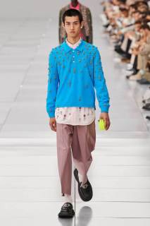 Kim Jones ha voluto festeggiare i suoi cinque anni di direzione creativa della linea Dior Uomo ripercorrendo quello che è stato il background storico di una delle delle maison francesi più importanti al mondo. Dior non si limita a presentare bermuda di ogni tipo, che ormai sono ben noti nelle passerelle, ma viene rispolverato il classico  pinocchietto anni ’50.