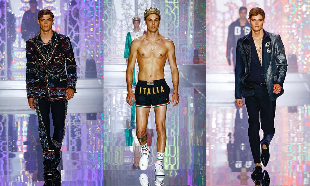 Nella sede in viale Piave 24, il 19 giugno ha sfilato il duo Dolce & Gabbana, che per l’occasione ha allestito la location con luci colorate. Dopo due presentazioni digitali, Dolce & Gabbana racconta di un nuovo massimalismo e di una collezione fatta di maglie a rete, jeans strappati, con un richiamo agli anni 2000.