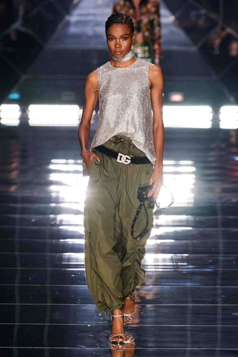 La donna Dolce & Gabbana manifesta la sua femminilità con minigonne sempre più corte, trasparenze e scollature vertiginose. Il reggiseno diventa il nuovo top dell’estate, così come la brassiere e il corsetto, da indossare sotto una giacca o sotto un’ampia maglietta. Strass dai colori accesi impreziosiscono, come tante piccole pietre preziose, ampi e morbidi pantaloni, camicie e capispalla.