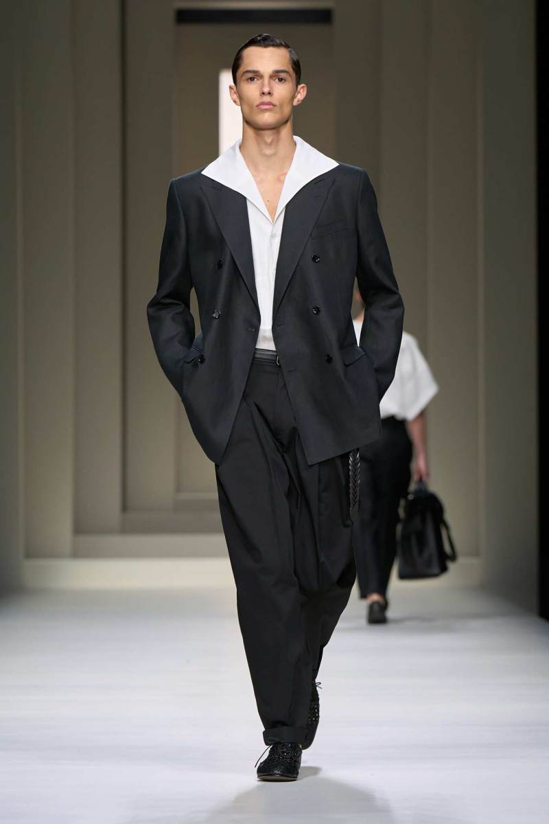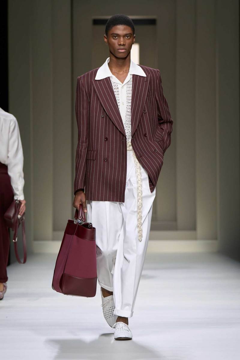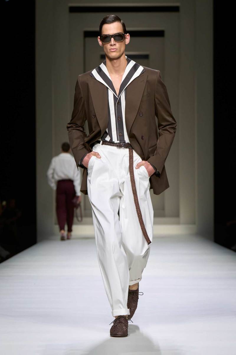 L’ispirazione principale arriva dalla cultura, dalle icone cinematografiche nonché dai nomi iconici del cinema italiano degli anni Cinquanta e Sessanta. Una collezione sofisticata, leggera, spensierata, lussuosa e raffinata, che comprende completi morbidi, pantaloni con pinces, camicie in lino, giacche colorate, polo, bermuda. Moltissimi i cenni alla tradizione italiana, arricchiti e rivisitati in chiave più moderna.