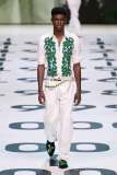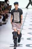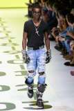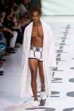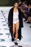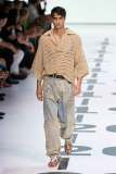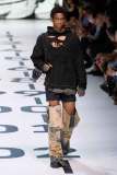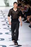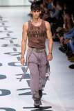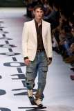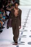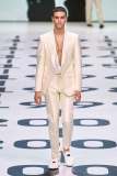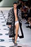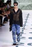Una memoria che è anche una sorta di seduta analitica, che si rivela importante soprattutto per verificare il punto di rottura dell’onda, cioè il momento in cui uno stile acquisisce la storicità. La sfilata viene aperta da un modello in canottiera e slip: è il primo completo della linea di intimo, con gli slip alti e senza l’elastico con il logo. A seguire si trovano ad esempio le giacche interamente ricamate come i mantelli dei santi barocchi siciliani, i jeans strappati, le maglie lavorate a crochet e le camicie in pizzo. E ancora, le cravatte nere con i completi dai pantaloni a vita alta e la giacca oversize e via dicendo.
