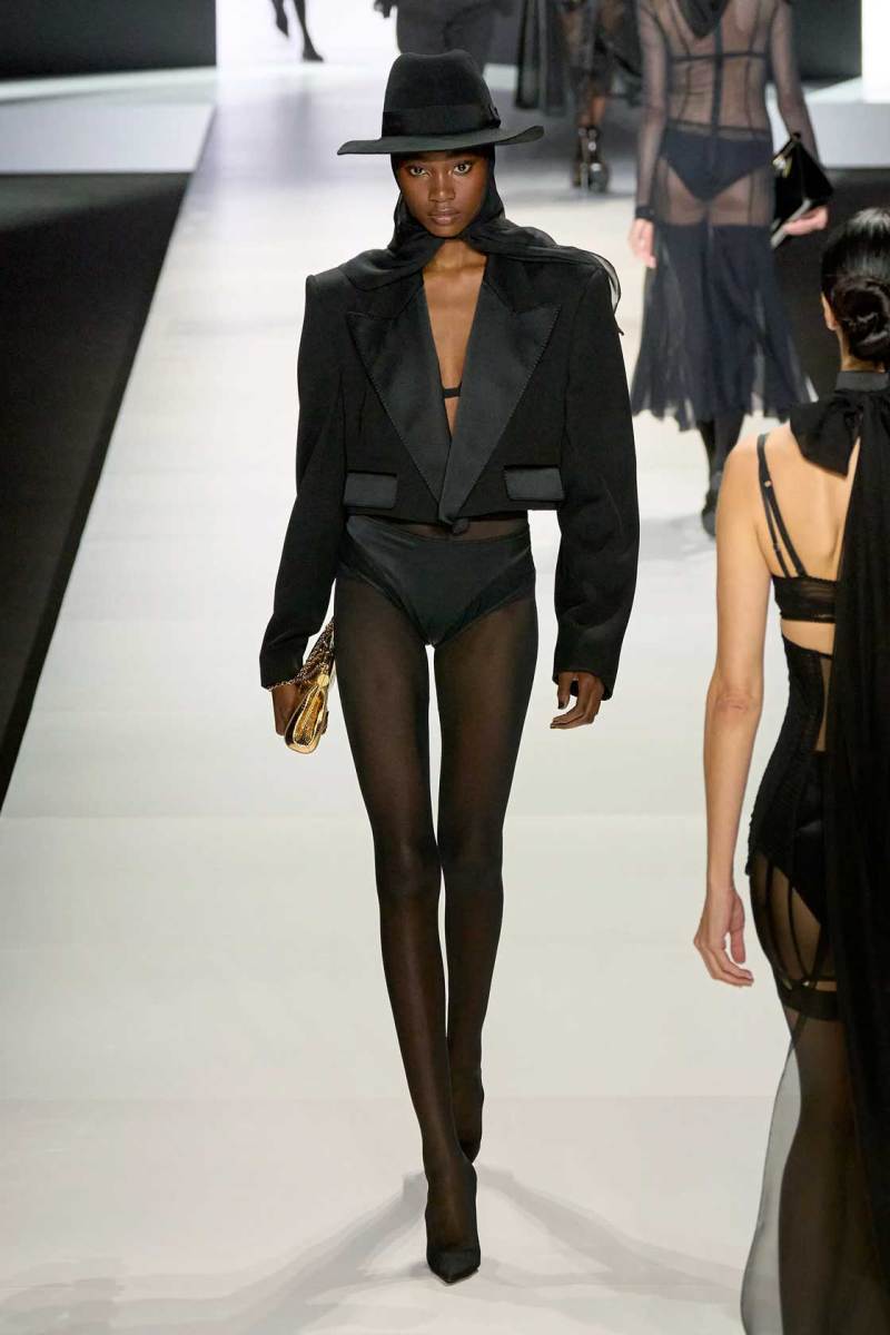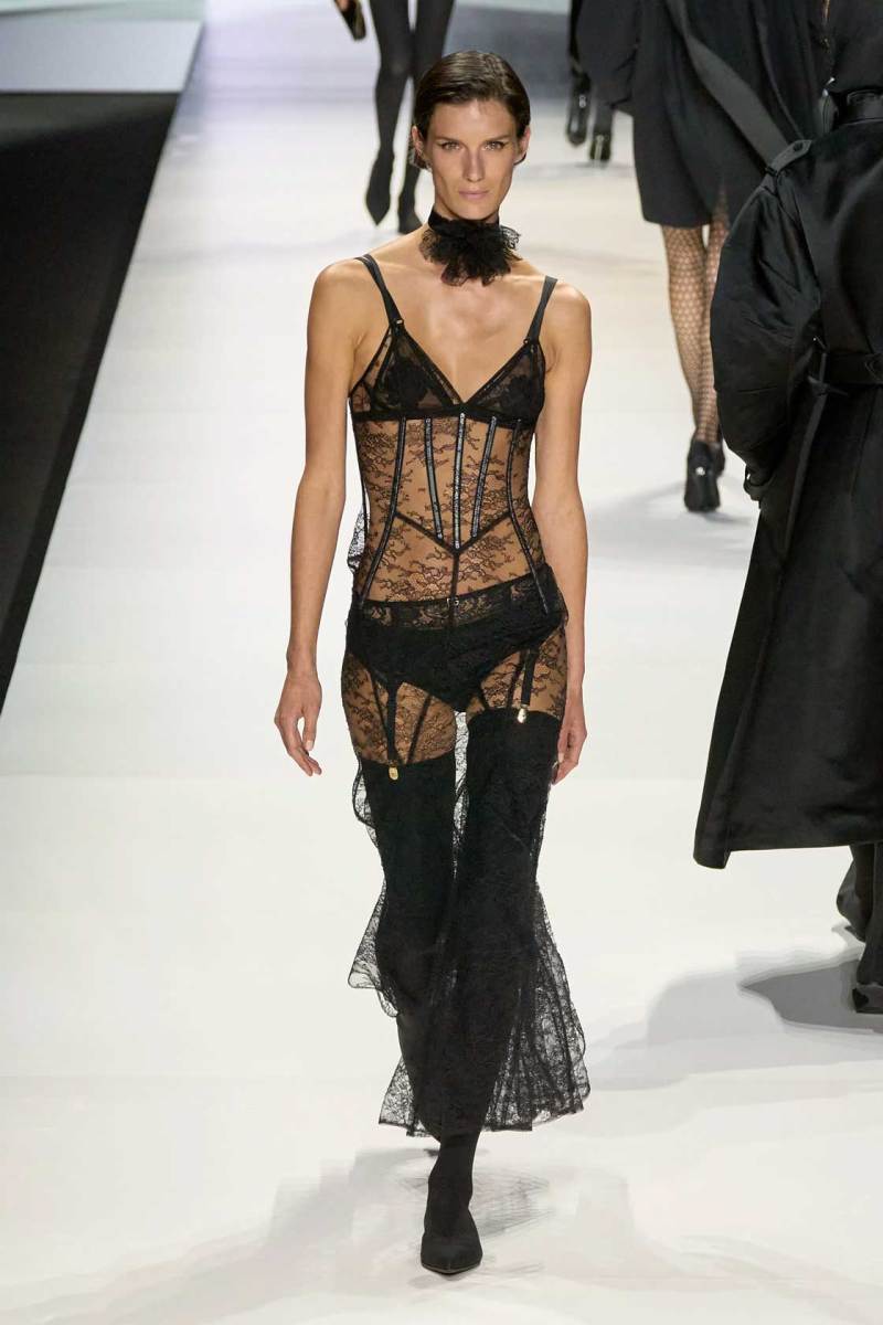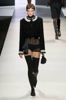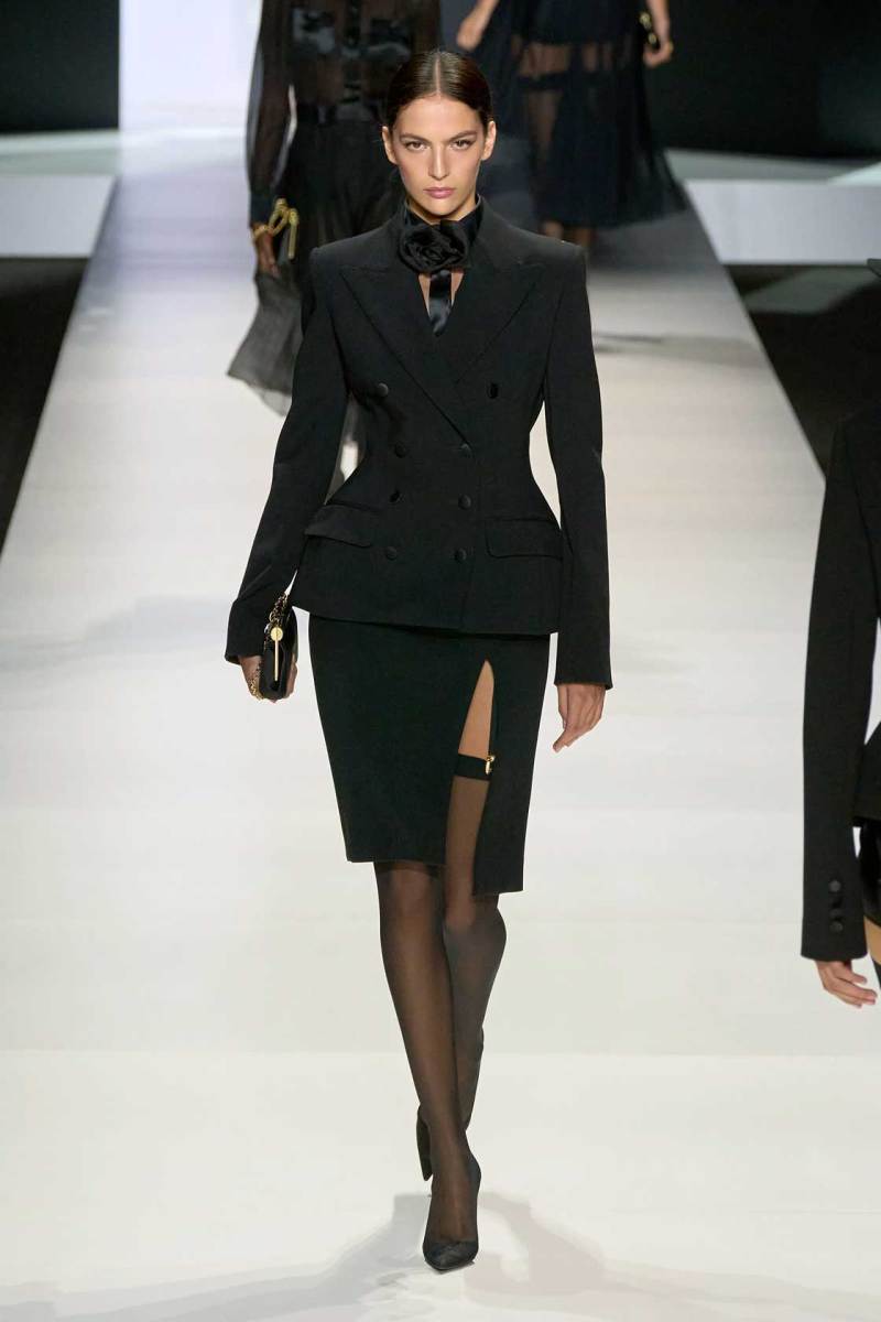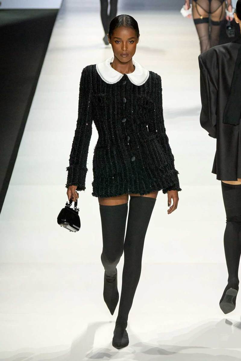 Una passerella dolce e sensuale per la Spring/Summer 2024 del brand siculo. Giochi di vedo non vedo si riconfermano per Dolce&Gabbana con tanto total black, pizzi e reti. Sfilano anche un completo gessato, rivisitato in chiave sexy e spezzato da guêpière e pump altissime per una donna sensuale e slanciata. E ancora, righe ma non solo.