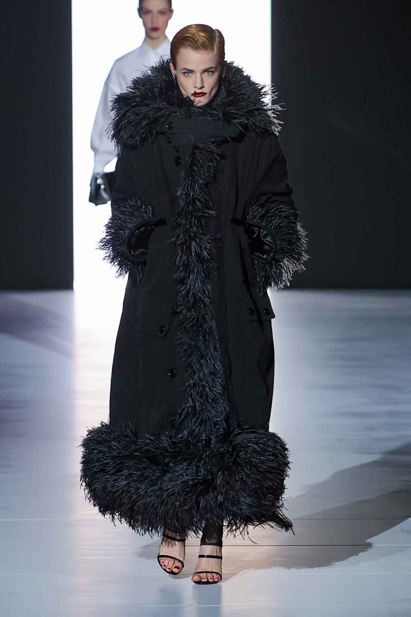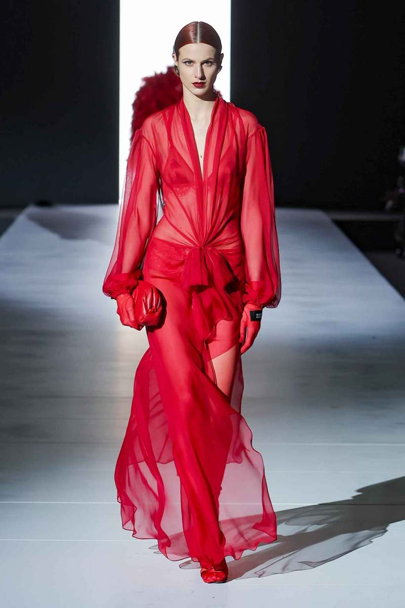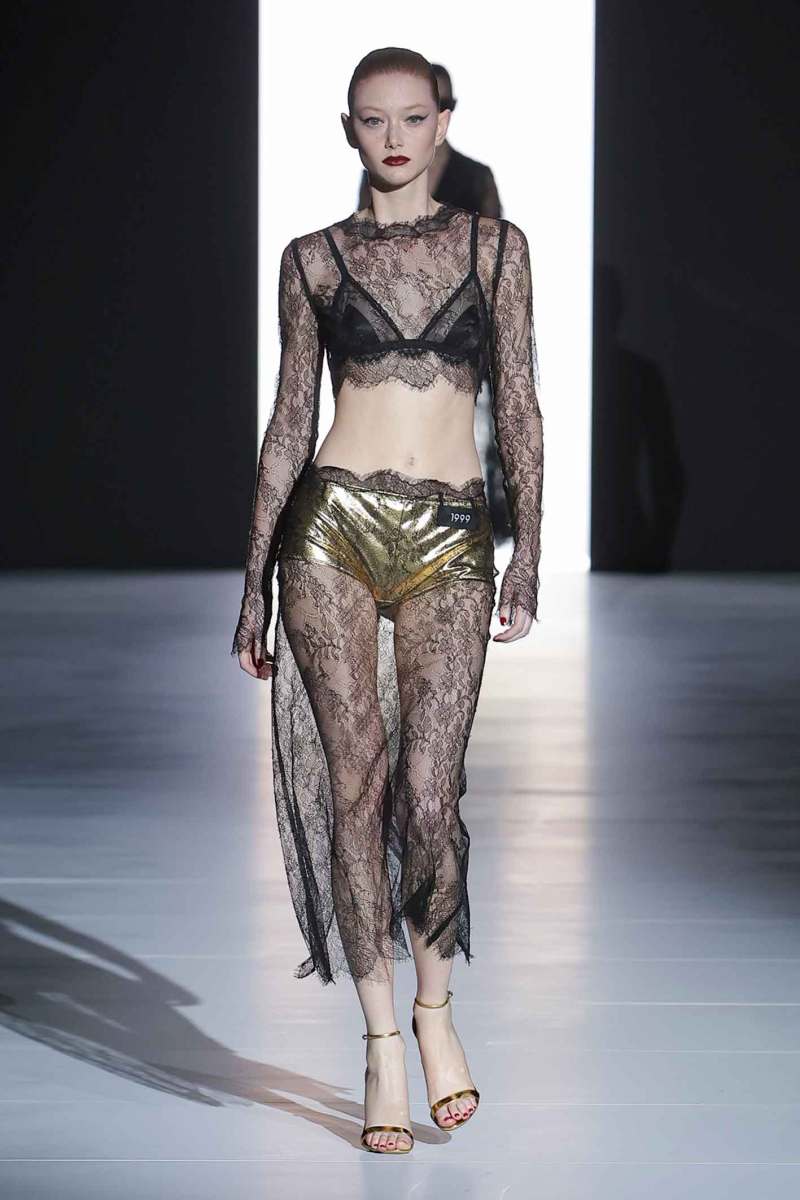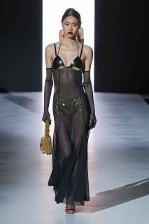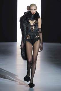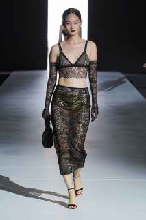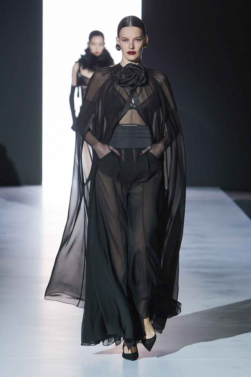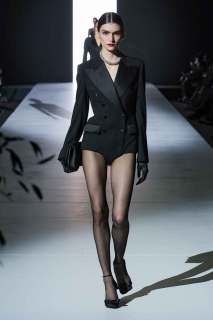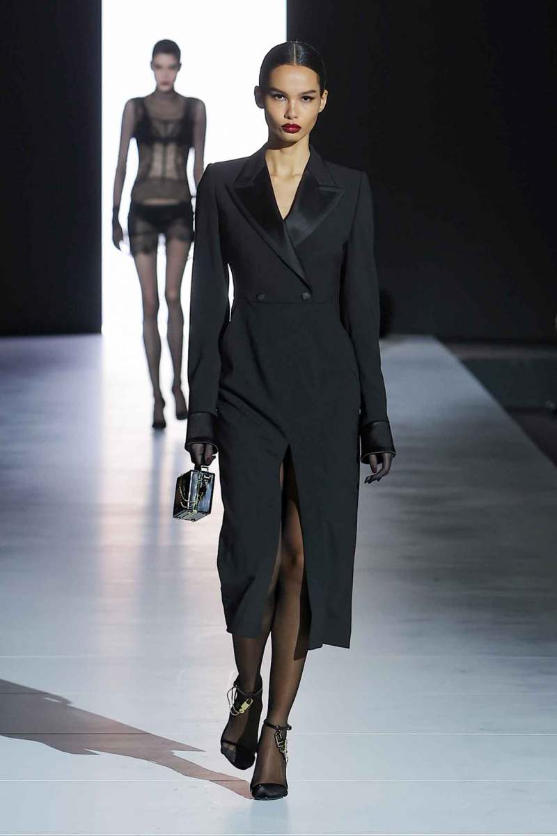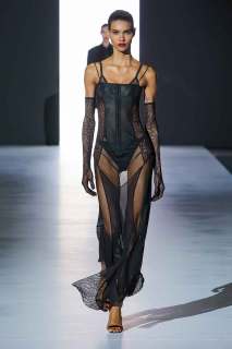 La nuova collezione AI 2023-24 trasuda femminilità e sensualità: gli abiti e la lingerie trasparenti in pizzo, tulle e chiffon scivolano sul corpo e ne delineano le forme. Giacche e cappotti sono elegantissimi in lane doppie pettinate e cardate, talvolta decorati da preziosi cristalli neri. Il nero è il colore che prevale in questa stagione, ma si alterna all’oro, che impreziosisce e dona un’aura regale a chi lo indossa, al rosso, rappresentante per eccellenza della sensualità, e a un tocco di bianco, di estrema finezza. Il duo di stilisti ci lascia quindi la sua personale visione di sensualità femminile: non sexy ma intimamente seducente.