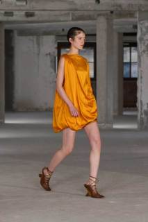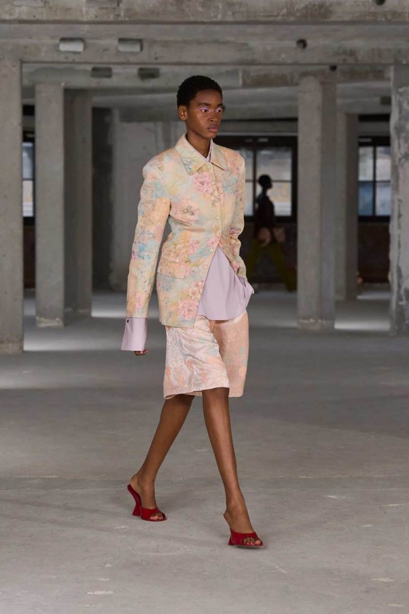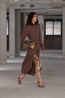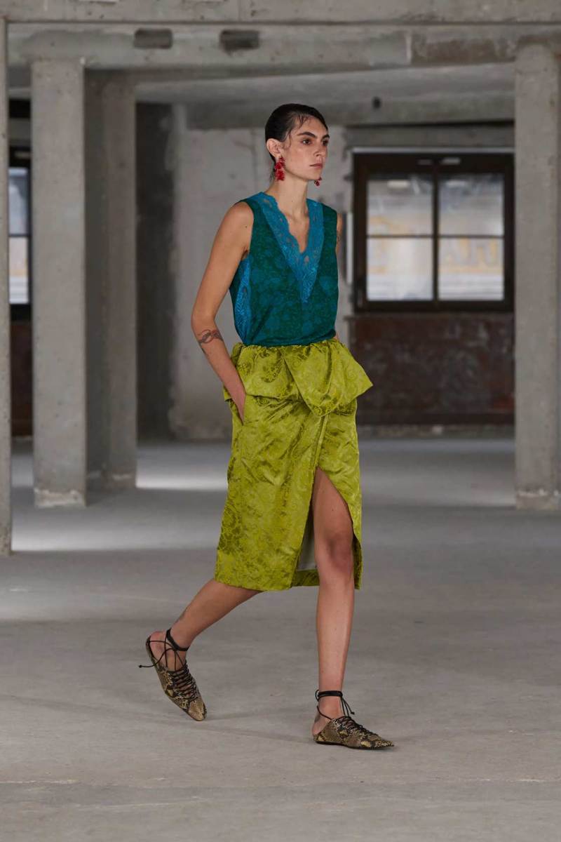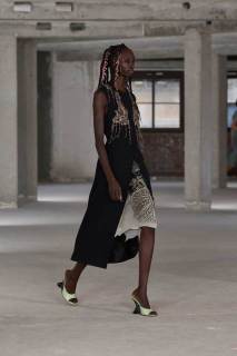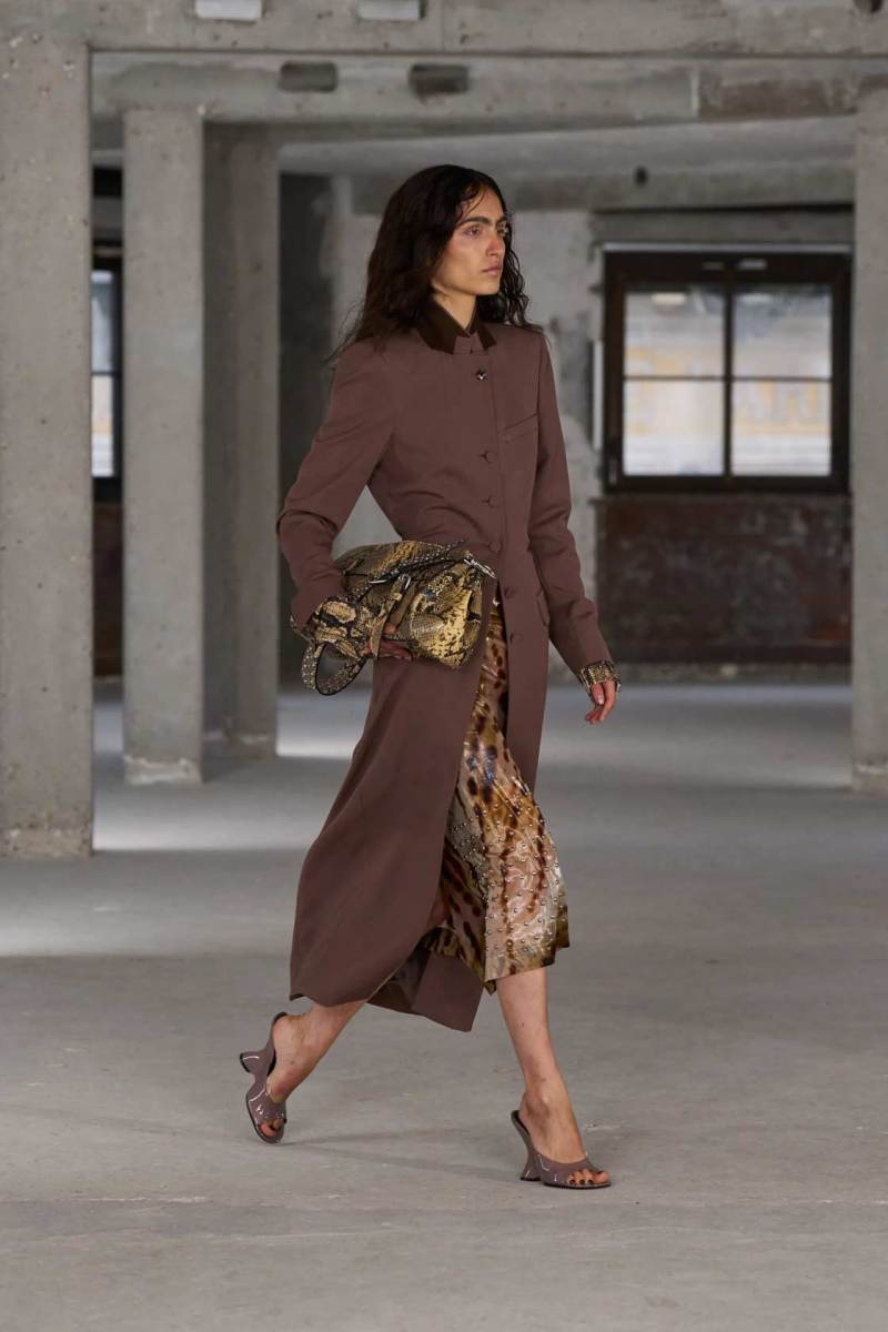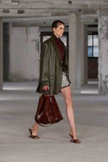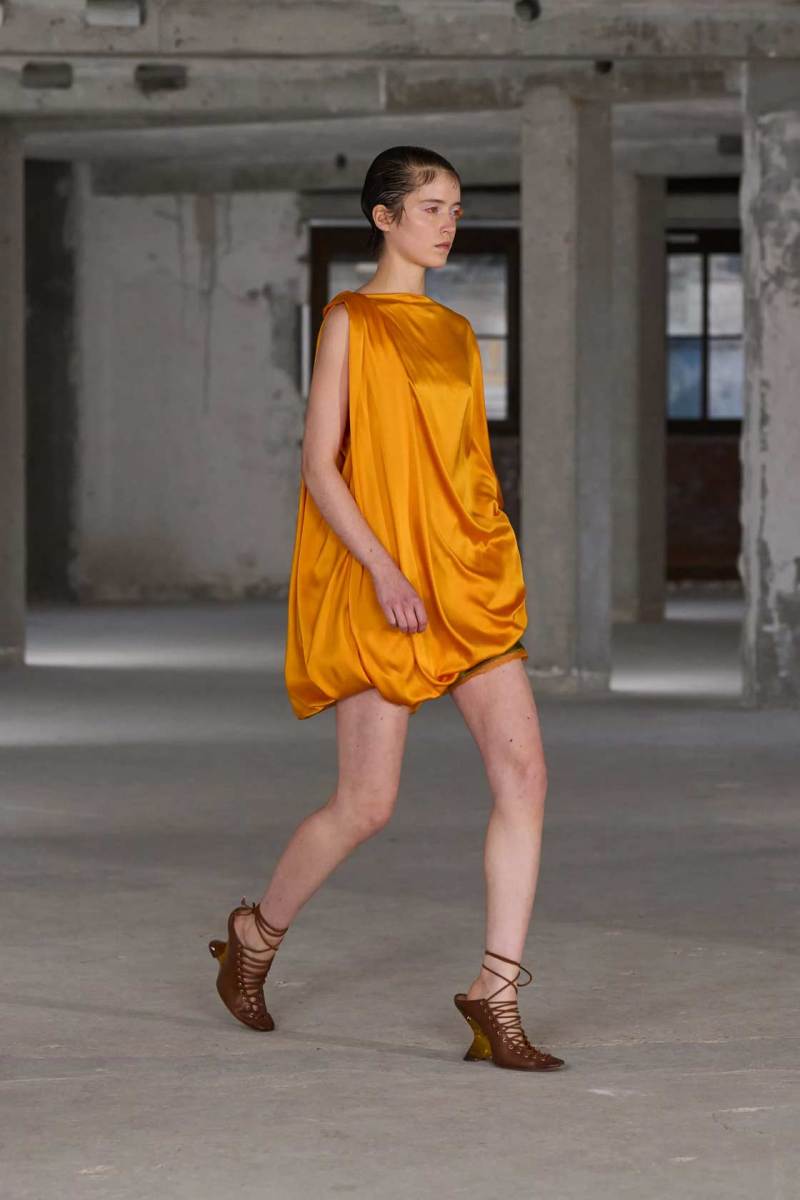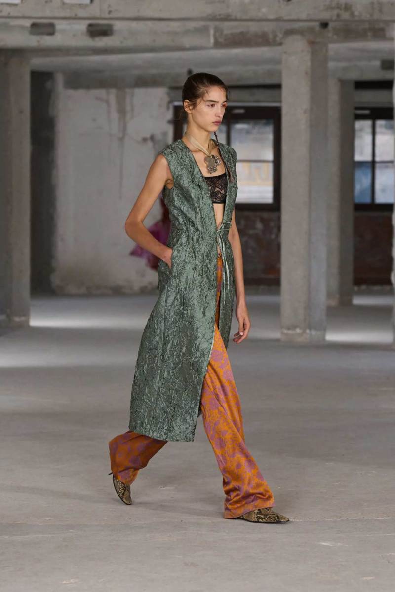 È evidente: si percepisce la mancanza del suo tocco, che rendeva il tutto più complesso nella lettura. La fanno da padrone i completi corti in satin color-block e tantissimo, sia in abiti che in gonne, la stampa ispirata al fiore dell’Orchidea, probabilmente un omaggio alla cultura orientale. Un altro leitmotiv è la stampa pitone, che apre la sfilata in un trench e si ripropone in diverse borse e accessori. I gioielli sono chunky, molto in linea con il trend attuale, e le scarpe sono lucide con forme ricurve oppure slingback tempestate di cristalli. In attesa del futuro Re di Dries Van Noten, siamo soddisfatti di questo lavoro.