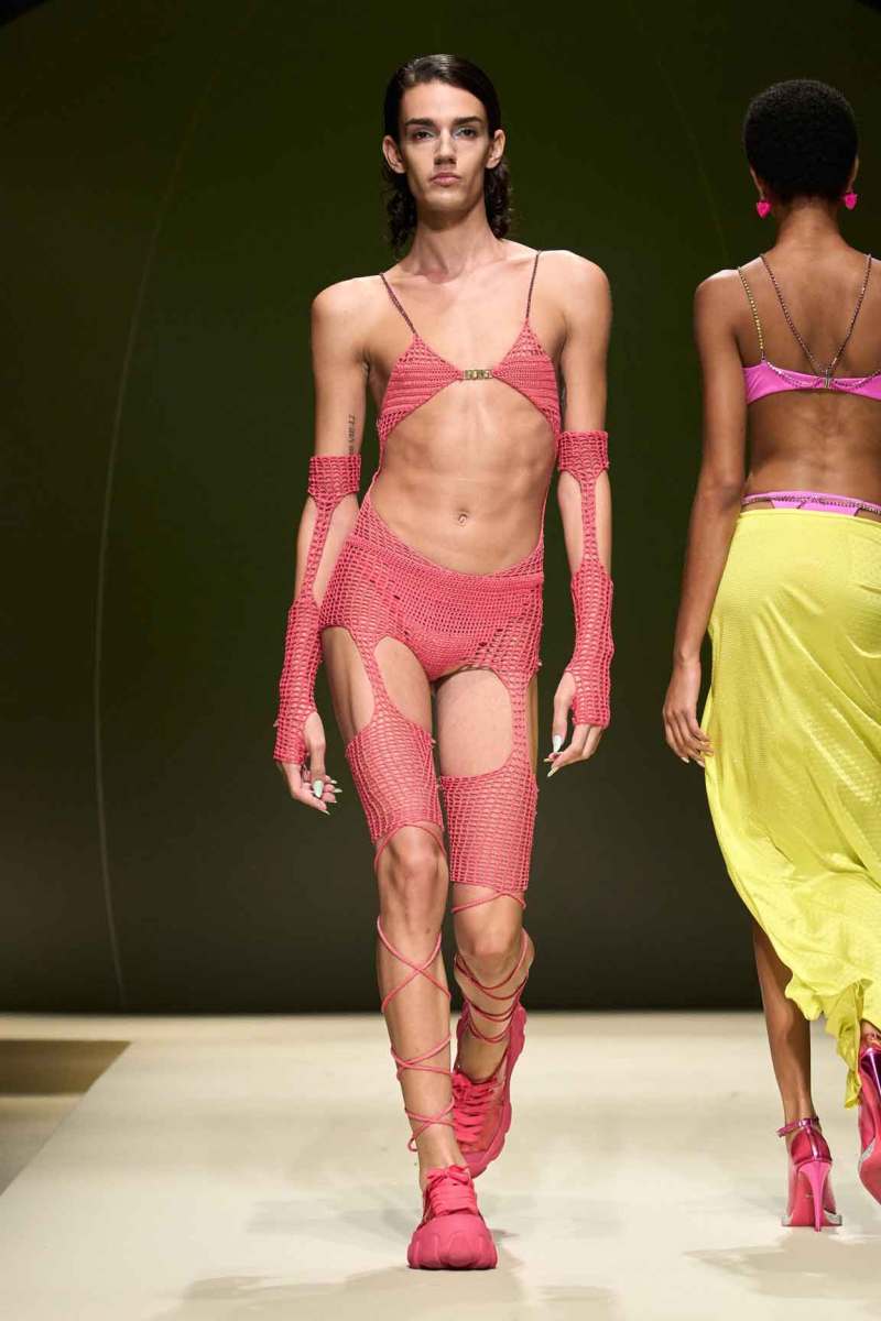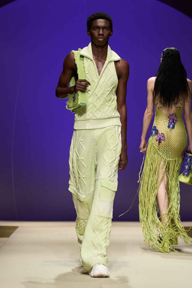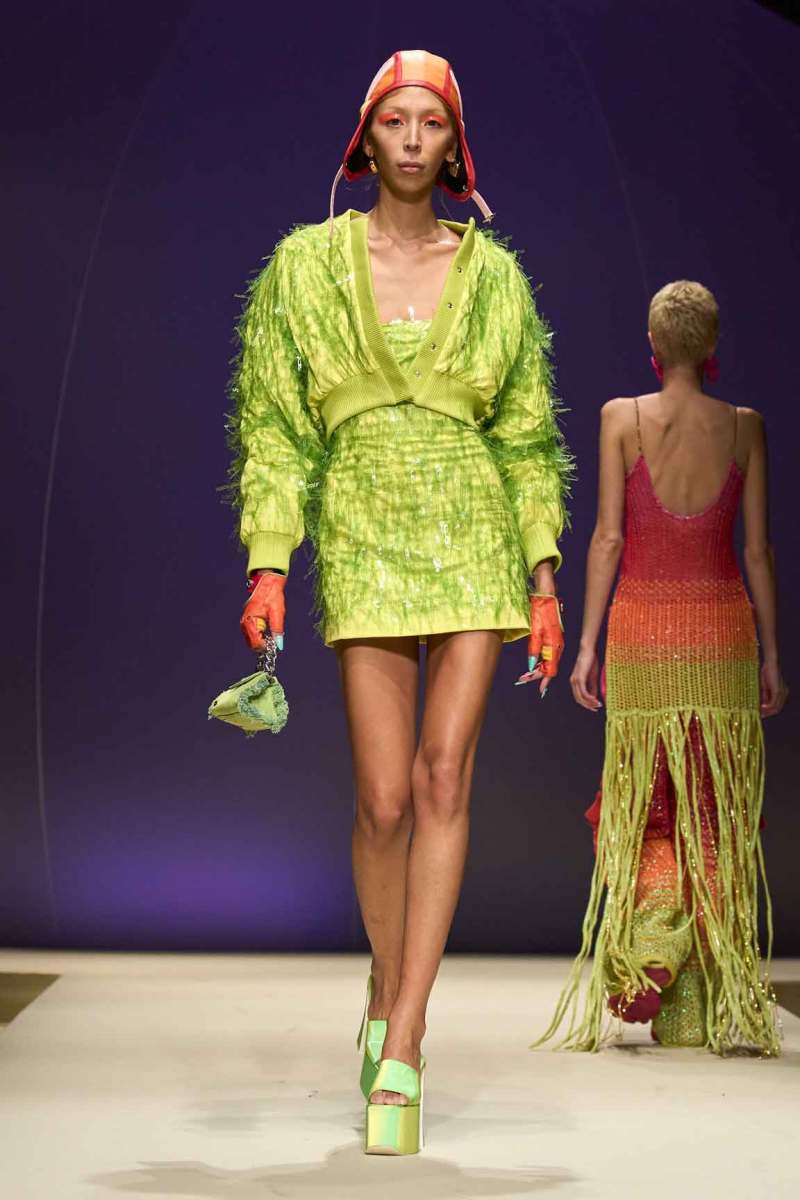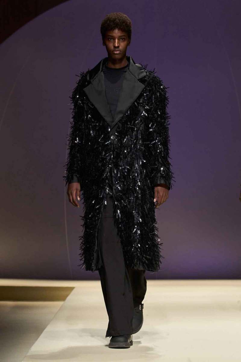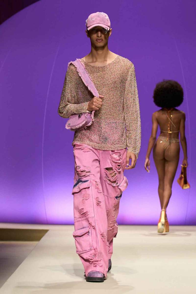 Il designer Giuliano Calza esprime un concetto chiave: la diversità diventa sexy e un punto di forza. Il club kid alieni, che torreggiano su enormi platform con facce dipinte in più colori, esprime l’idea che le minoranze devono essere protette per progredire. La sensazione di essere alieno è comune. A volte ci sentiamo alieni nei luoghi in cui una volta eravamo a casa. GCDS trasforma questa sensazione in una forza gioiosa, che abbraccia i colori di tutti.