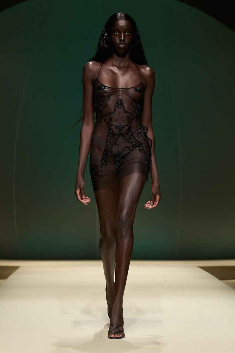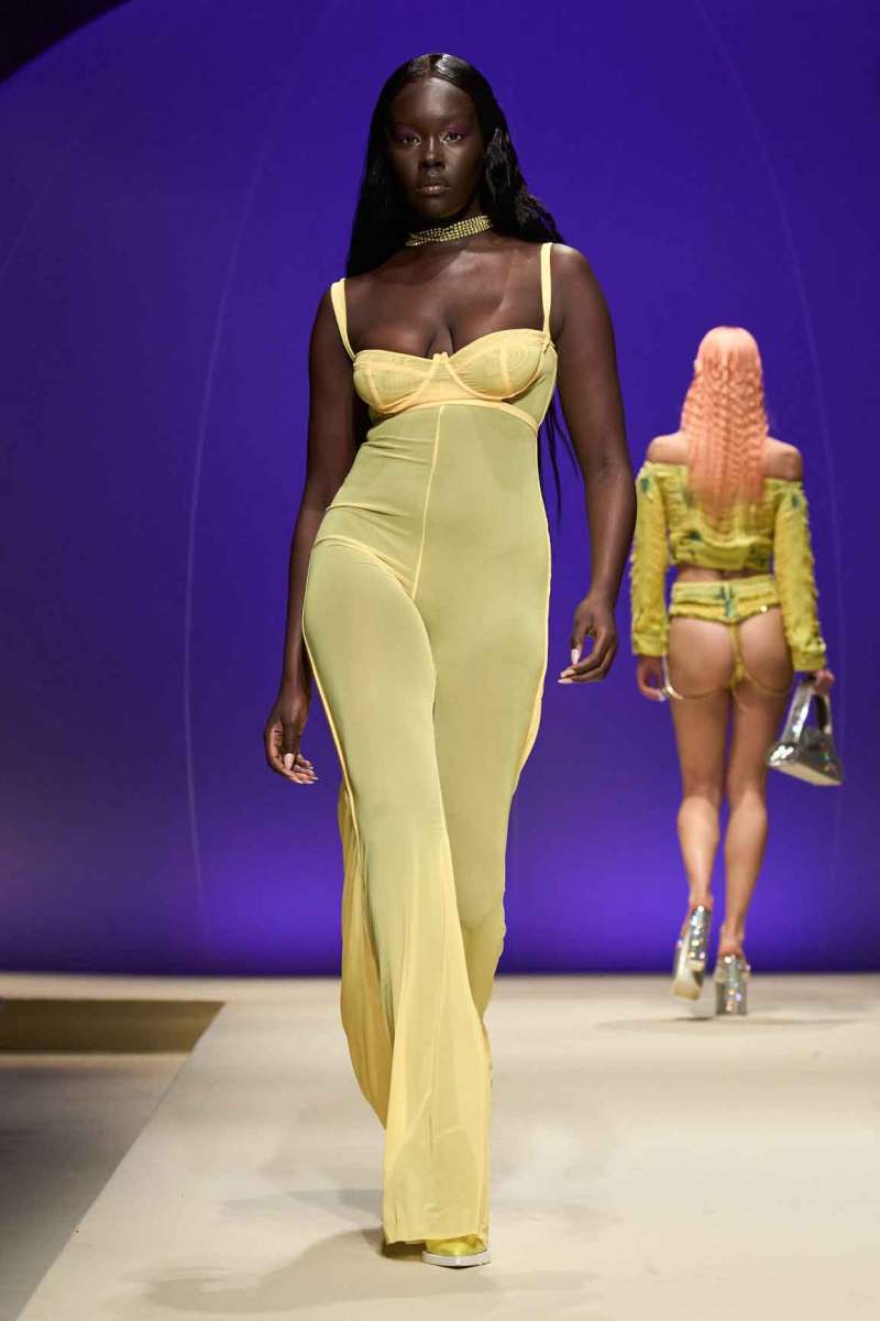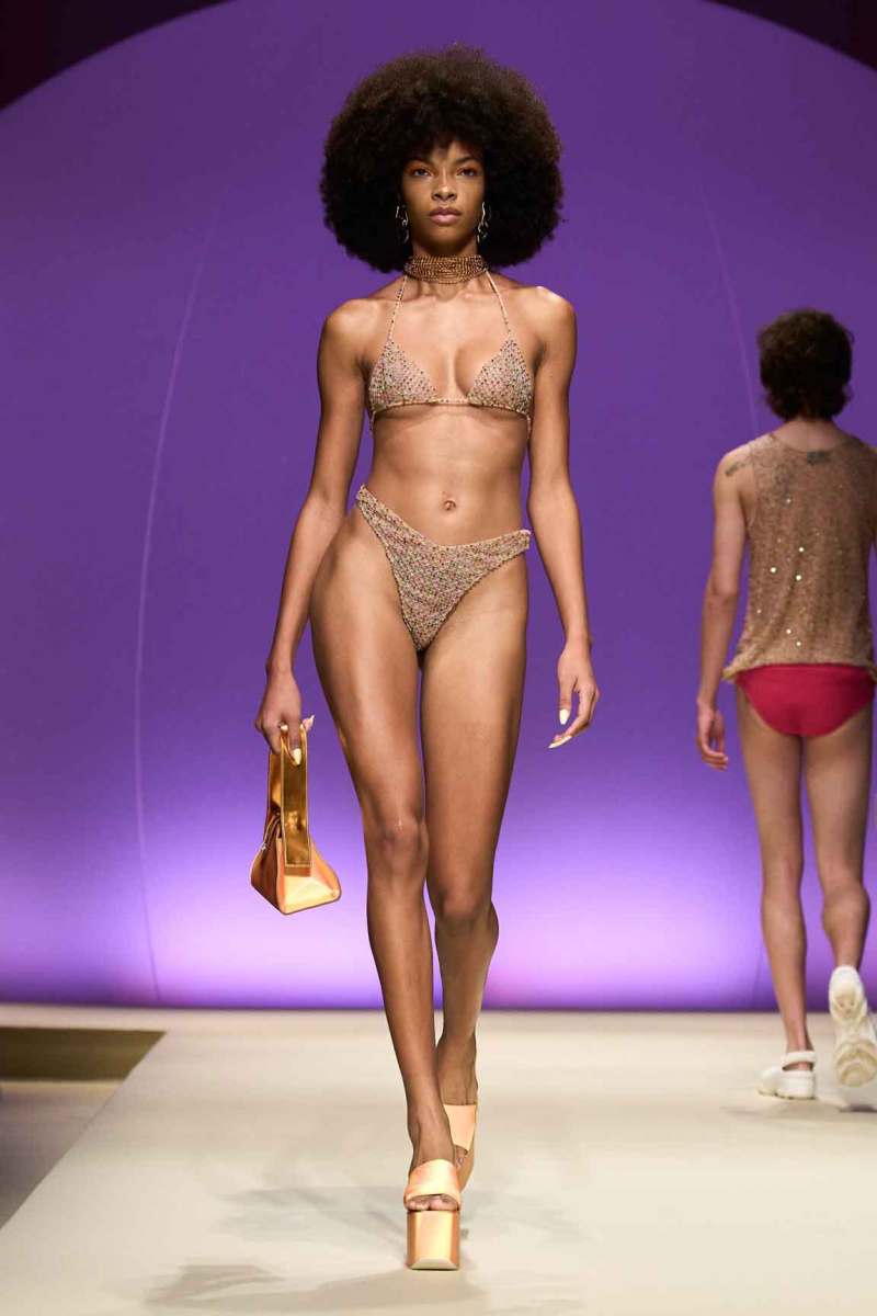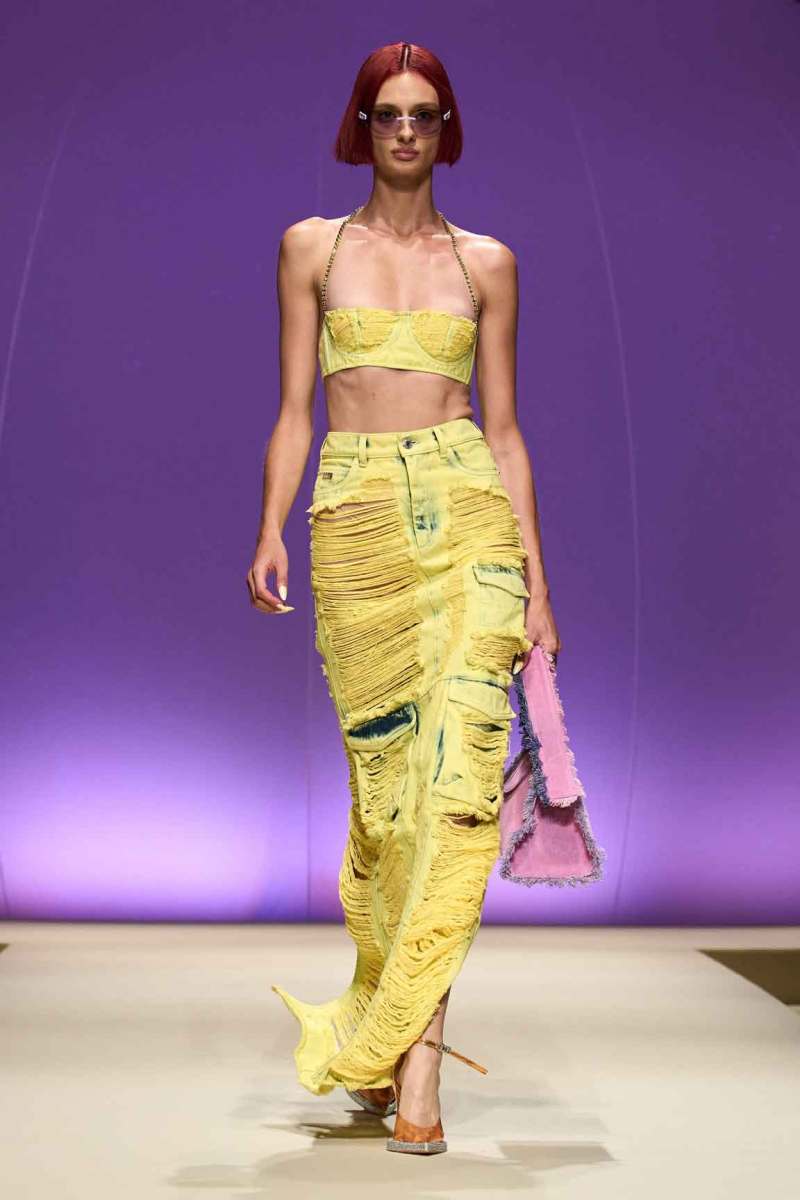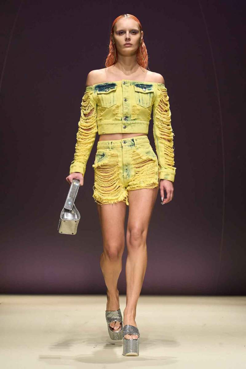 Il designer Giuliano Calza esprime un concetto chiave: la diversità diventa sexy e un punto di forza. Il club kid alieni, che torreggiano su enormi platform con facce dipinte in più colori, esprime l’idea che le minoranze devono essere protette per progredire. La sensazione di essere alieno è comune. A volte ci sentiamo alieni nei luoghi in cui una volta eravamo a casa. GCDS trasforma questa sensazione in una forza gioiosa, che abbraccia i colori di tutti.