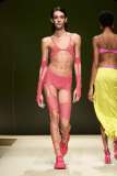 Costumi da bagno succinti, tute attillate come seconde pelli abbaglianti, paillettes luccicanti che rendono le superfici bagnate, abiti da motocross in colori luminosi, lurex e costine in abbondanza, fluorescenze e luccichii. Giuliano Calza immagina un’estate aliena e surreale in una discoteca (Alien Club), e l’abbigliamento adatto per viverla. Mai sottovalutare il potere di una minoranza che si riunisce per divertirsi in un club, unendo le forze sulla pista da ballo, mostrando con orgoglio i propri colori.
