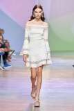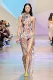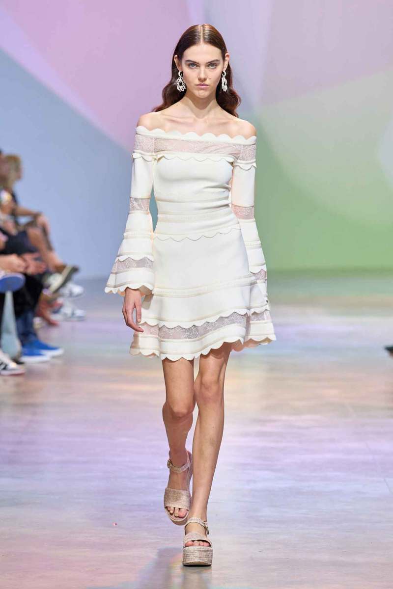Lo show è iniziato con un défilé di vestiti di grande impatto visivo: un reggiseno color bianco gardenia e una gonna avvolgente alla caviglia dello stesso colore; e poi, una maxi felpa sportiva accoppiata ad una gonna lunga hanno fatto la loro entrata di scena sulla passerella. Memorabili anche gli articoli in tulle, materiale molto amato e utilizzato dallo stilista, e qui abbellito da decorazioni floreali.