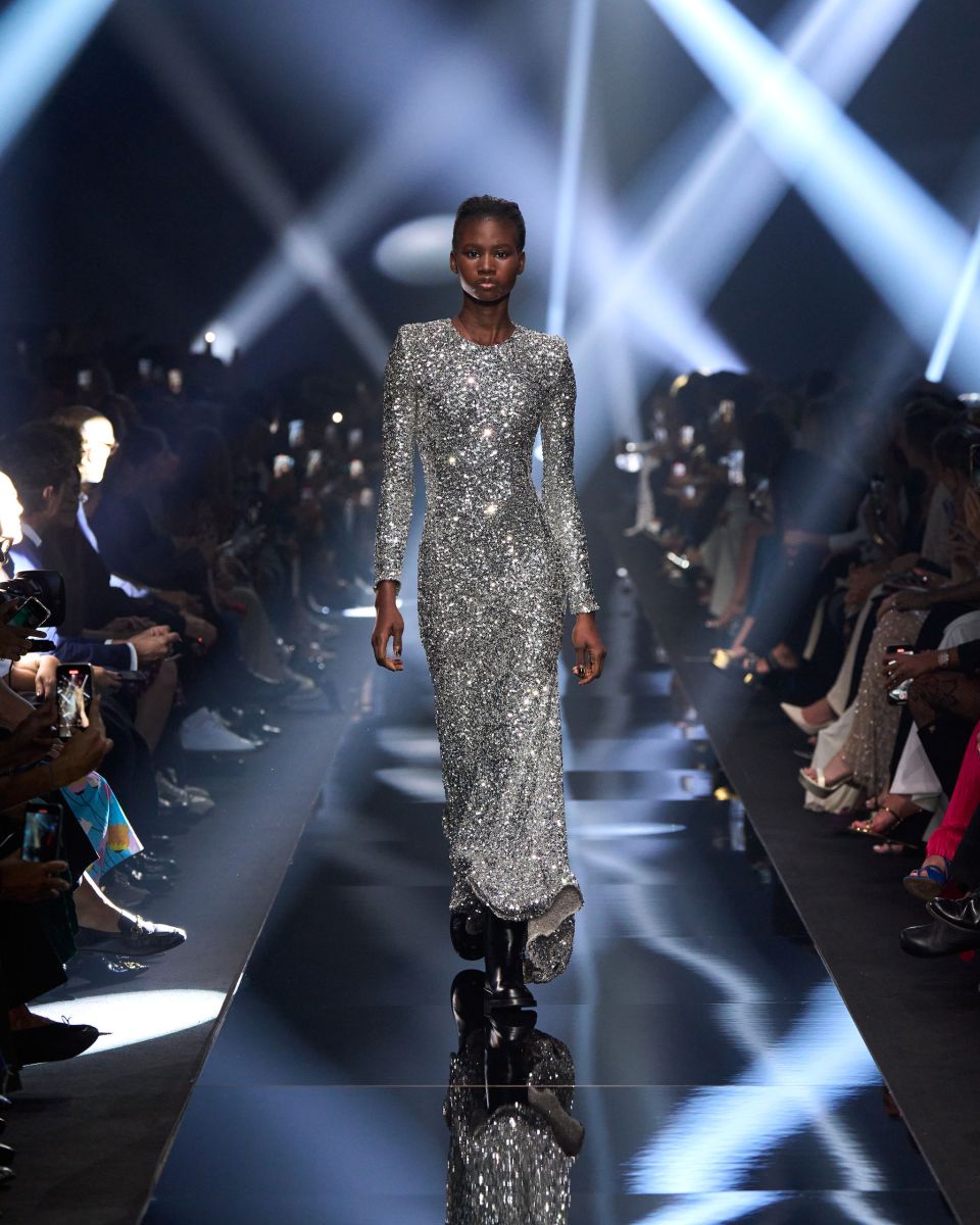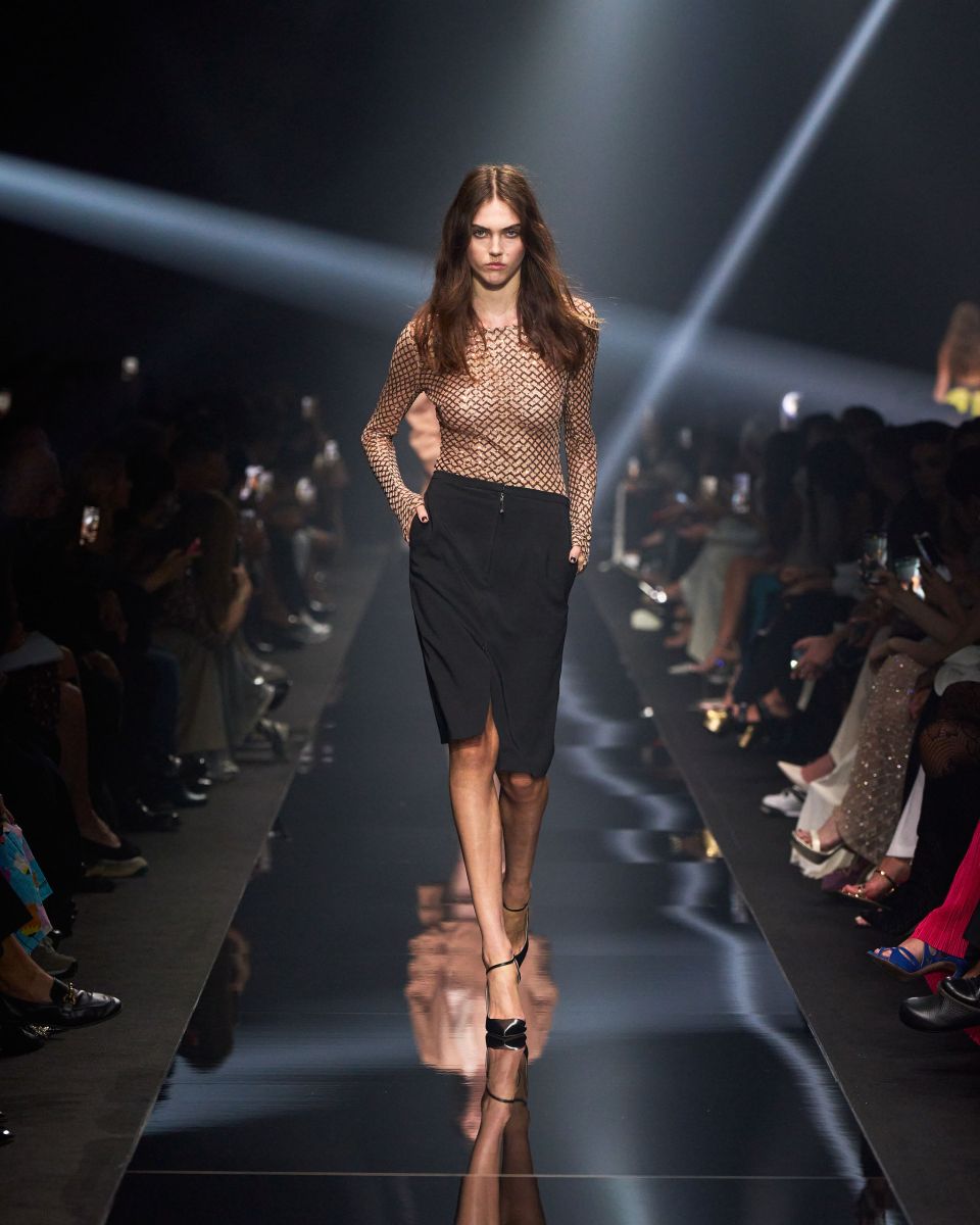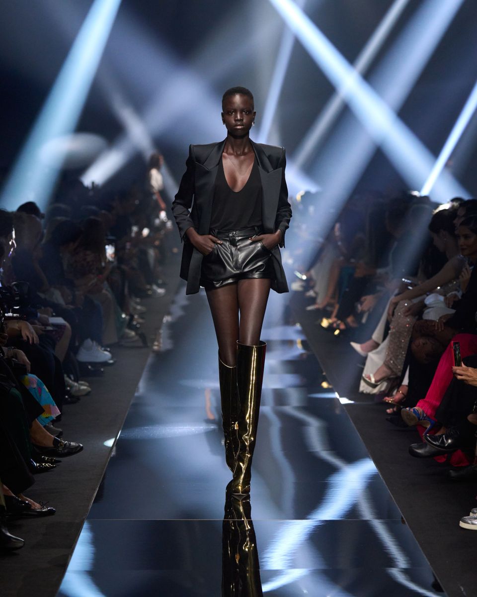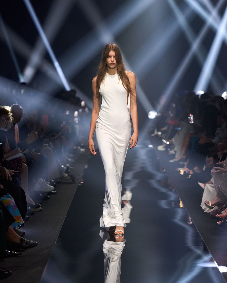 Una passerella che si trasforma in un concerto, quella di Elisabetta Franchi. Volumi che si contrappongono, capi dalle silhouette pulite, contrasti di proporzioni tra oversize e superfit. I micro short e i minidress si alternano a capi grintosi dall’animo rock e agli stivali biker.