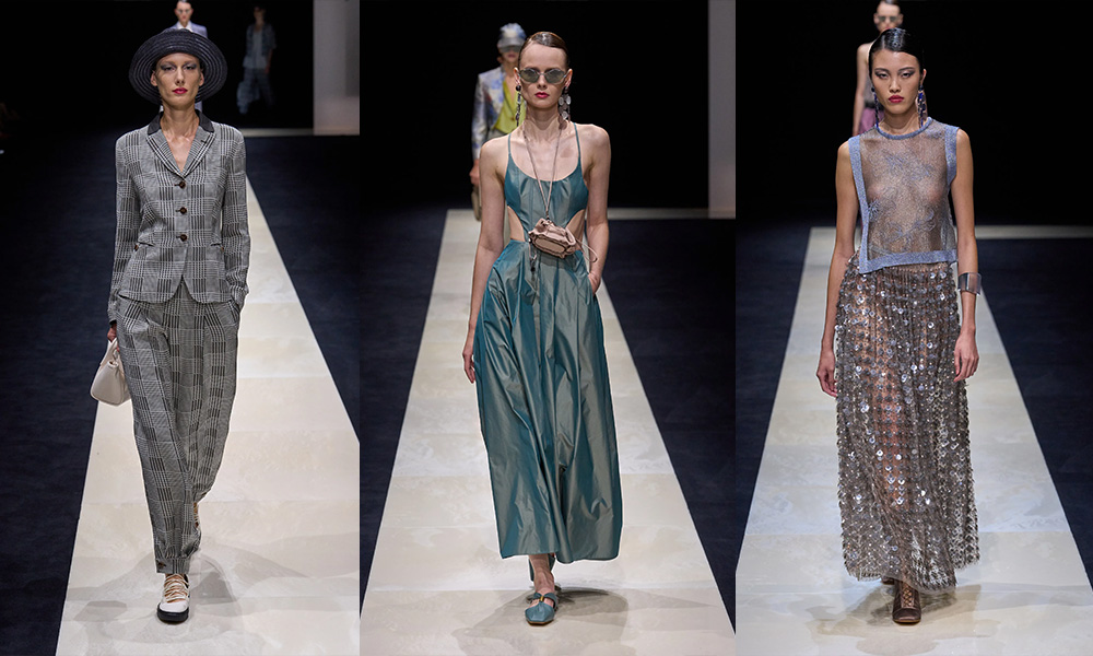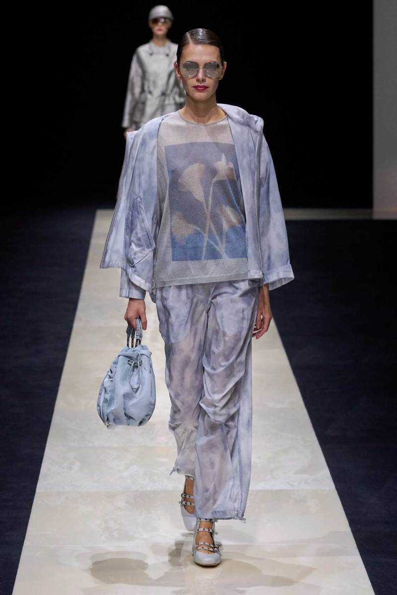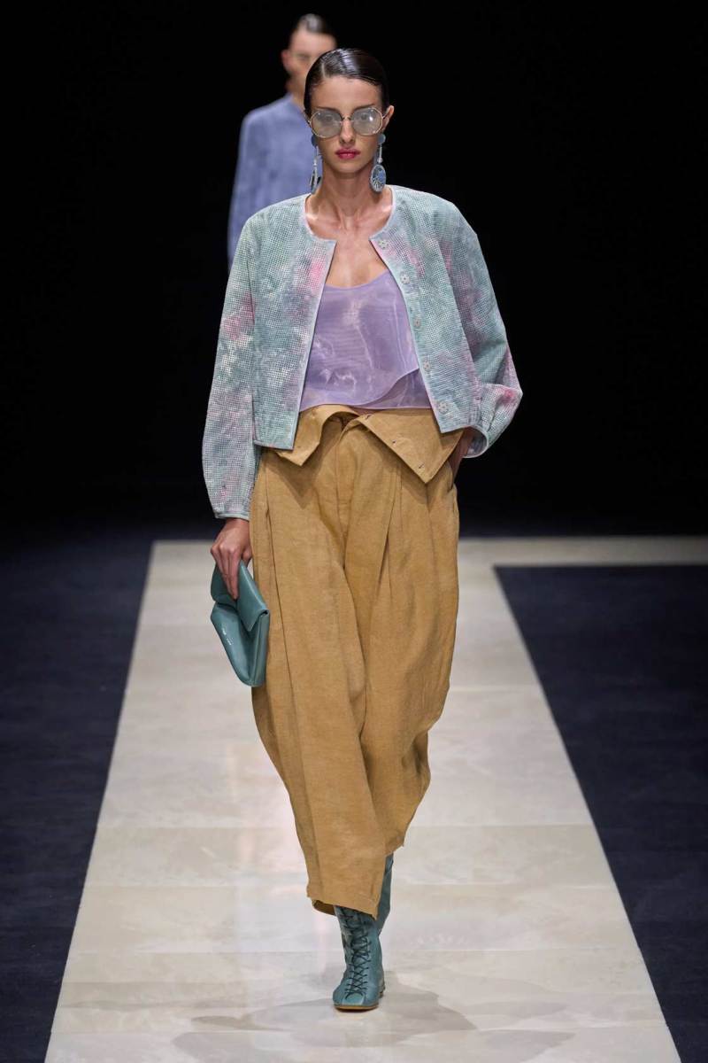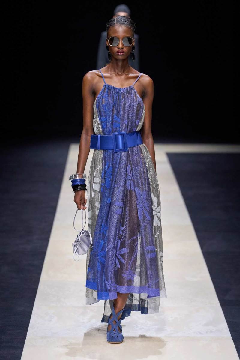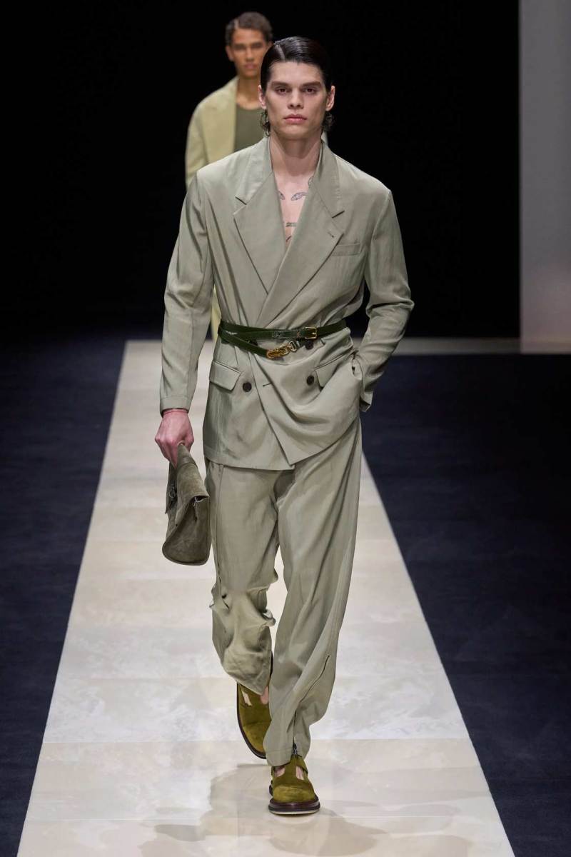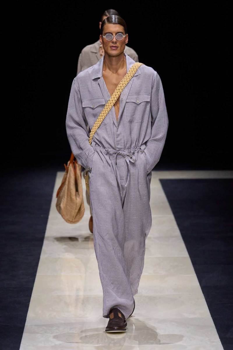 Si abbassano le luci in Via Bergognone 59 e veniamo immediatamente travolti dalla natura e dai suoi incantevoli colori, tra distese di colline, spiagge sconfinate e campi di lavanda provenzale tanto amati dallo stilista e frame di una delle sue amate ville a Saint Tropez. La collezione PE25 di Emporio porta la donna e l’uomo di Armani fuori dal solito habitat metropolitano e si lascia abbandonare alla pace e alla morbidezza offerta dalla natura evadendo dalla consueta durezza cittadina e dal suo tipico abbigliamento ordinario.