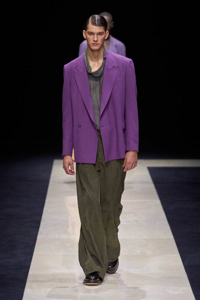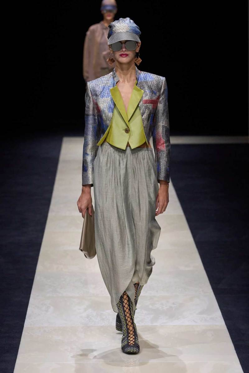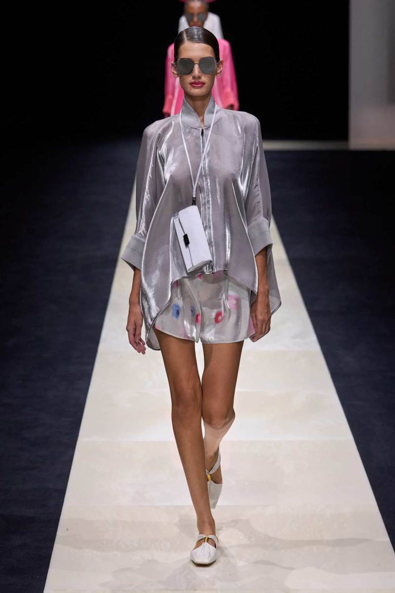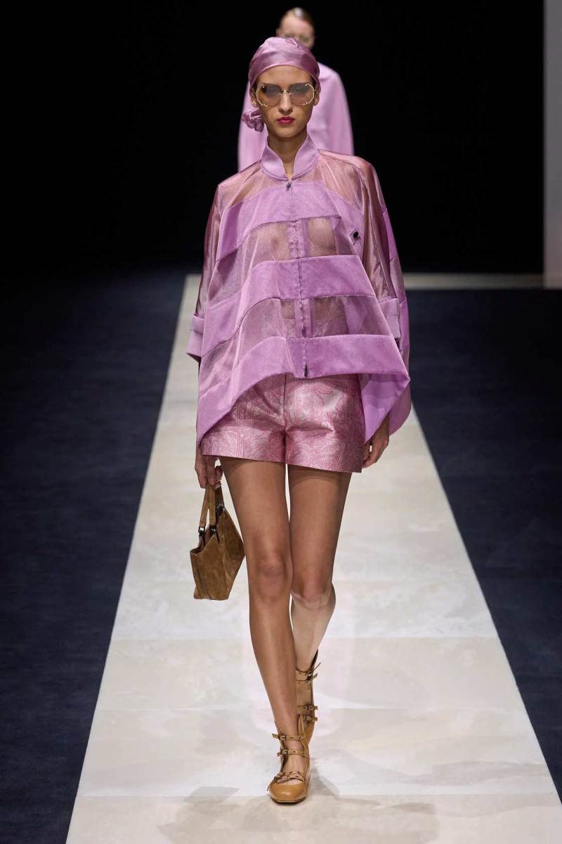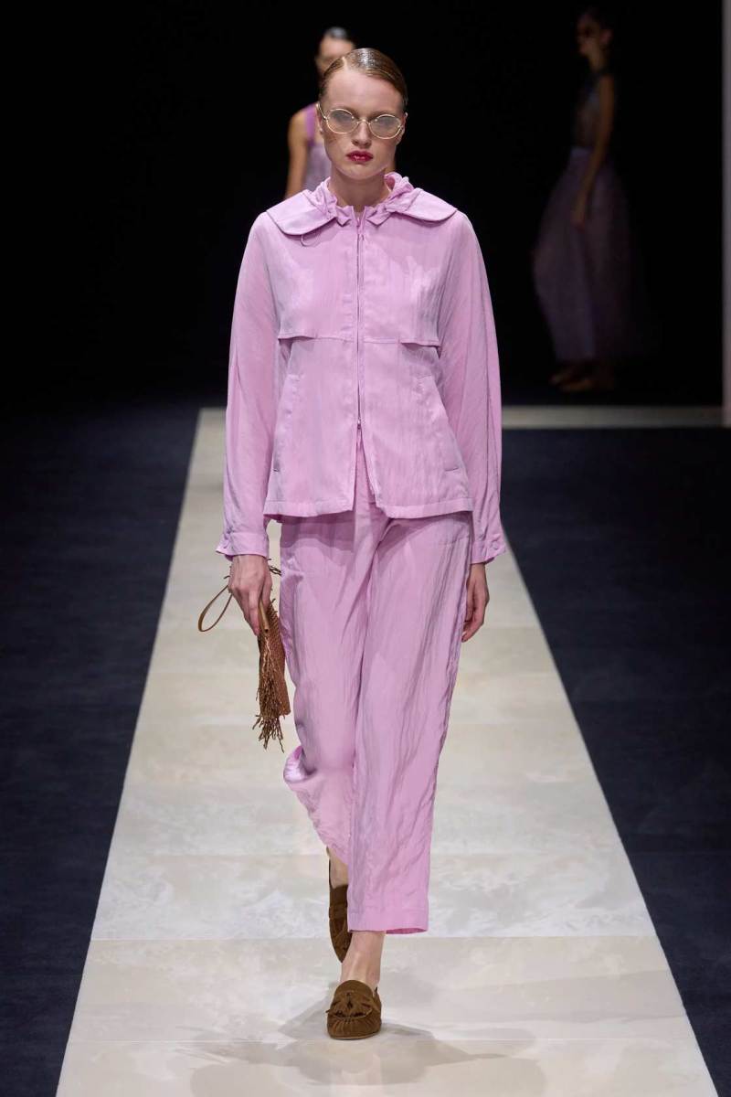 Si abbassano le luci in Via Bergognone 59 e veniamo immediatamente travolti dalla natura e dai suoi incantevoli colori, tra distese di colline, spiagge sconfinate e campi di lavanda provenzale tanto amati dallo stilista e frame di una delle sue amate ville a Saint Tropez. La collezione PE25 di Emporio porta la donna e l’uomo di Armani fuori dal solito habitat metropolitano e si lascia abbandonare alla pace e alla morbidezza offerta dalla natura evadendo dalla consueta durezza cittadina e dal suo tipico abbigliamento ordinario.