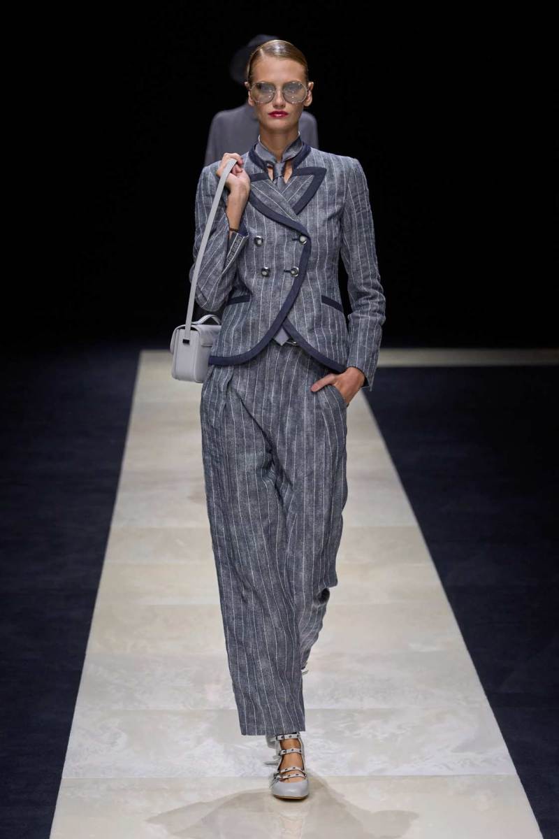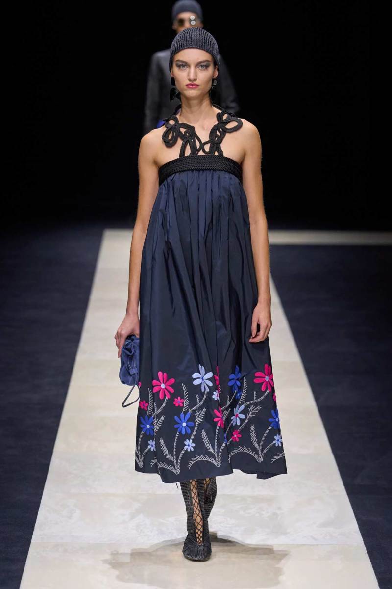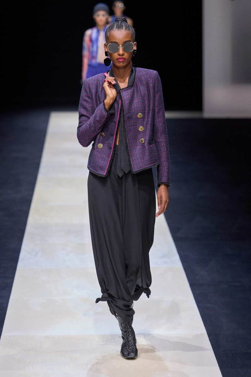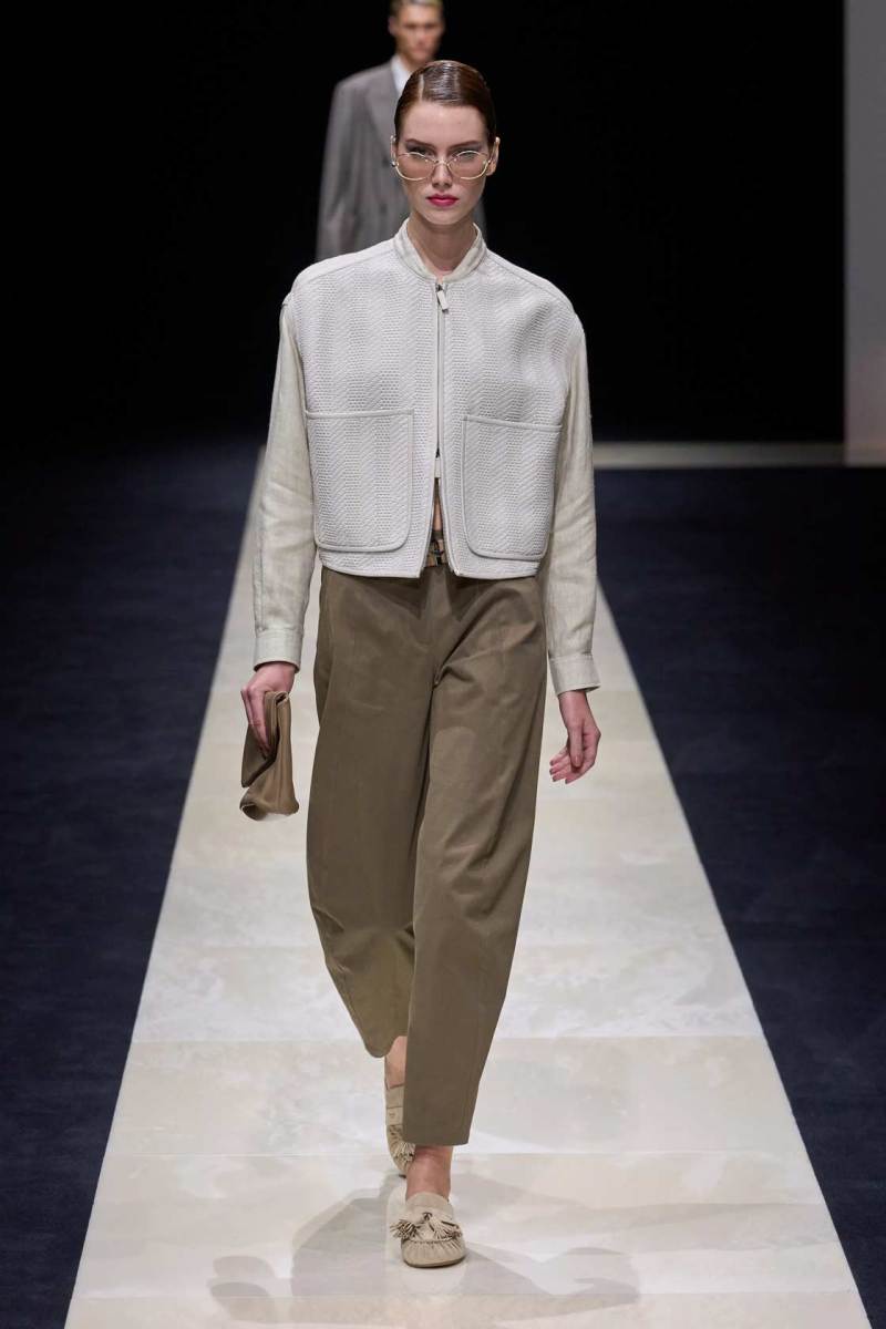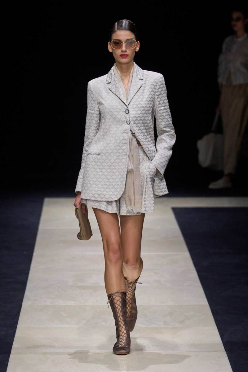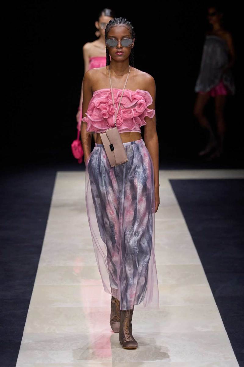 Si abbassano le luci in Via Bergognone 59 e veniamo immediatamente travolti dalla natura e dai suoi incantevoli colori, tra distese di colline, spiagge sconfinate e campi di lavanda provenzale tanto amati dallo stilista e frame di una delle sue amate ville a Saint Tropez. La collezione PE25 di Emporio porta la donna e l’uomo di Armani fuori dal solito habitat metropolitano e si lascia abbandonare alla pace e alla morbidezza offerta dalla natura evadendo dalla consueta durezza cittadina e dal suo tipico abbigliamento ordinario.
