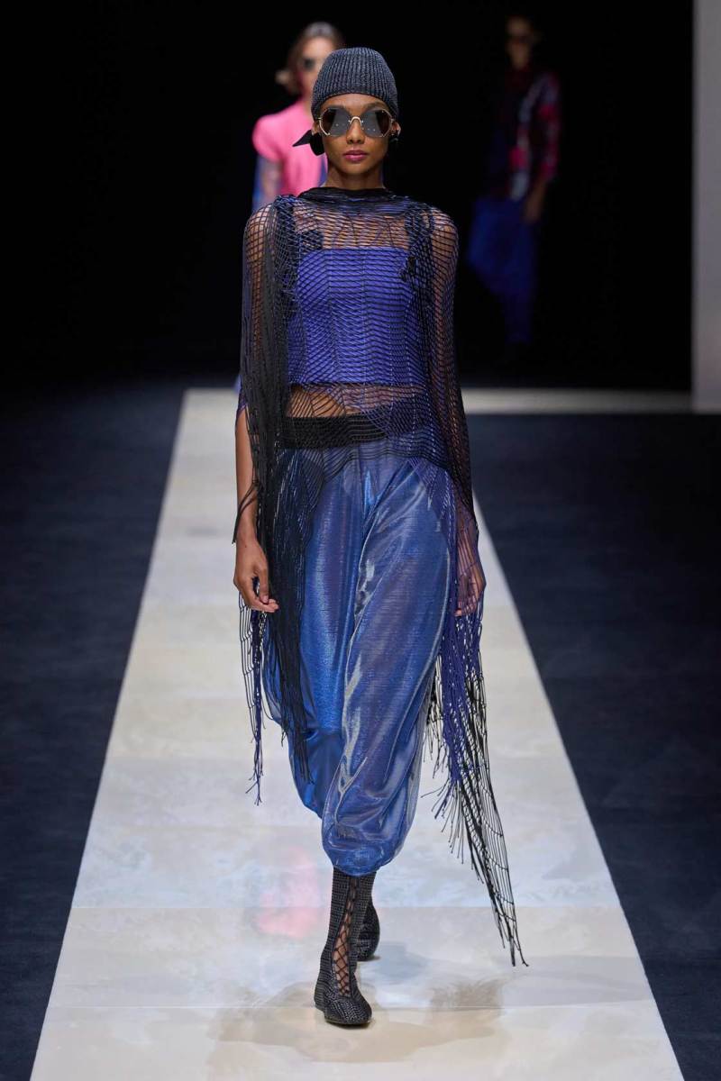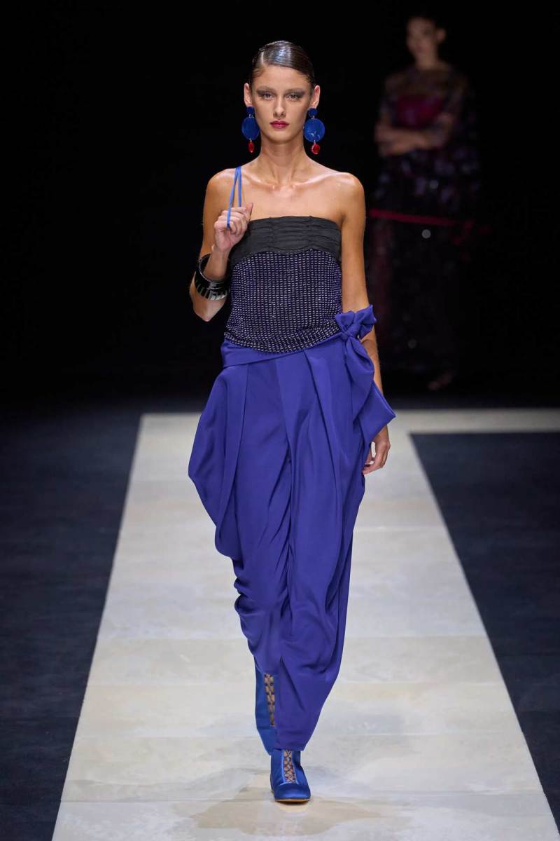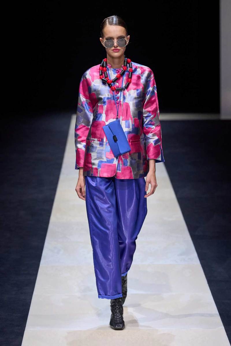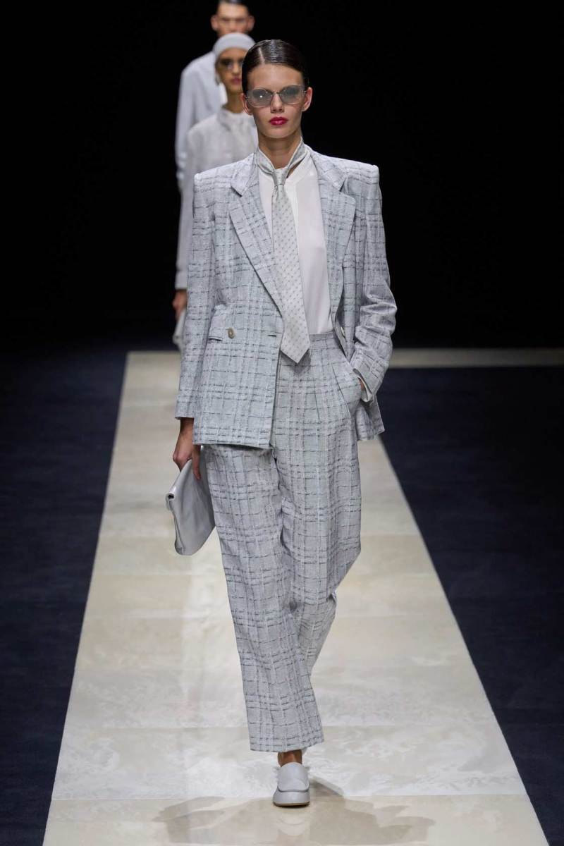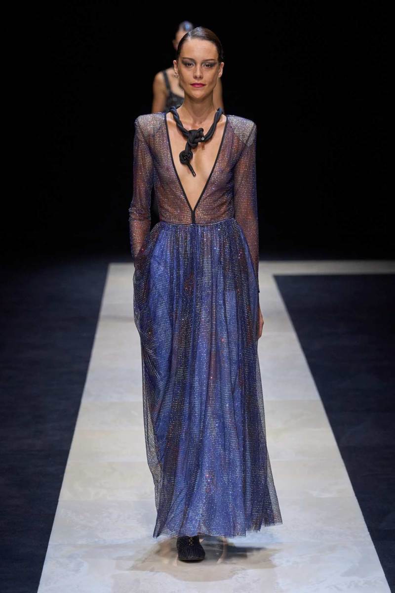 Si abbassano le luci in Via Bergognone 59 e veniamo immediatamente travolti dalla natura e dai suoi incantevoli colori, tra distese di colline, spiagge sconfinate e campi di lavanda provenzale tanto amati dallo stilista e frame di una delle sue amate ville a Saint Tropez. La collezione PE25 di Emporio porta la donna e l’uomo di Armani fuori dal solito habitat metropolitano e si lascia abbandonare alla pace e alla morbidezza offerta dalla natura evadendo dalla consueta durezza cittadina e dal suo tipico abbigliamento ordinario.