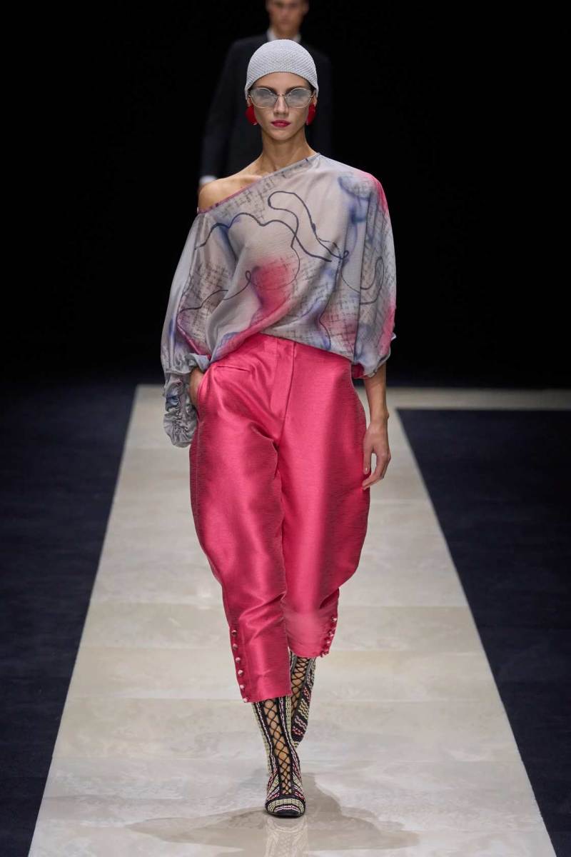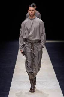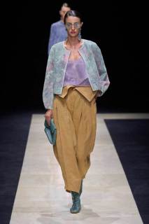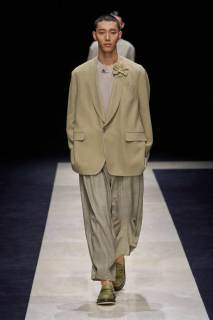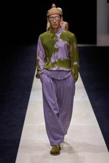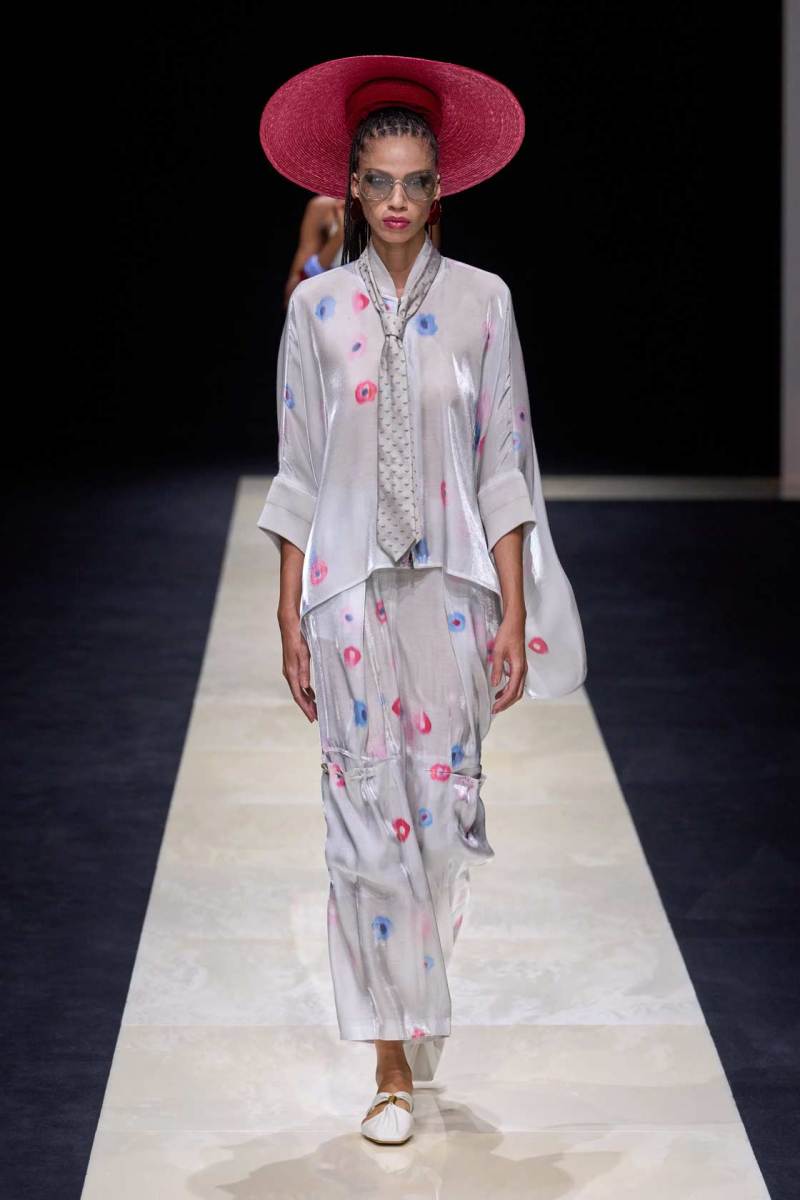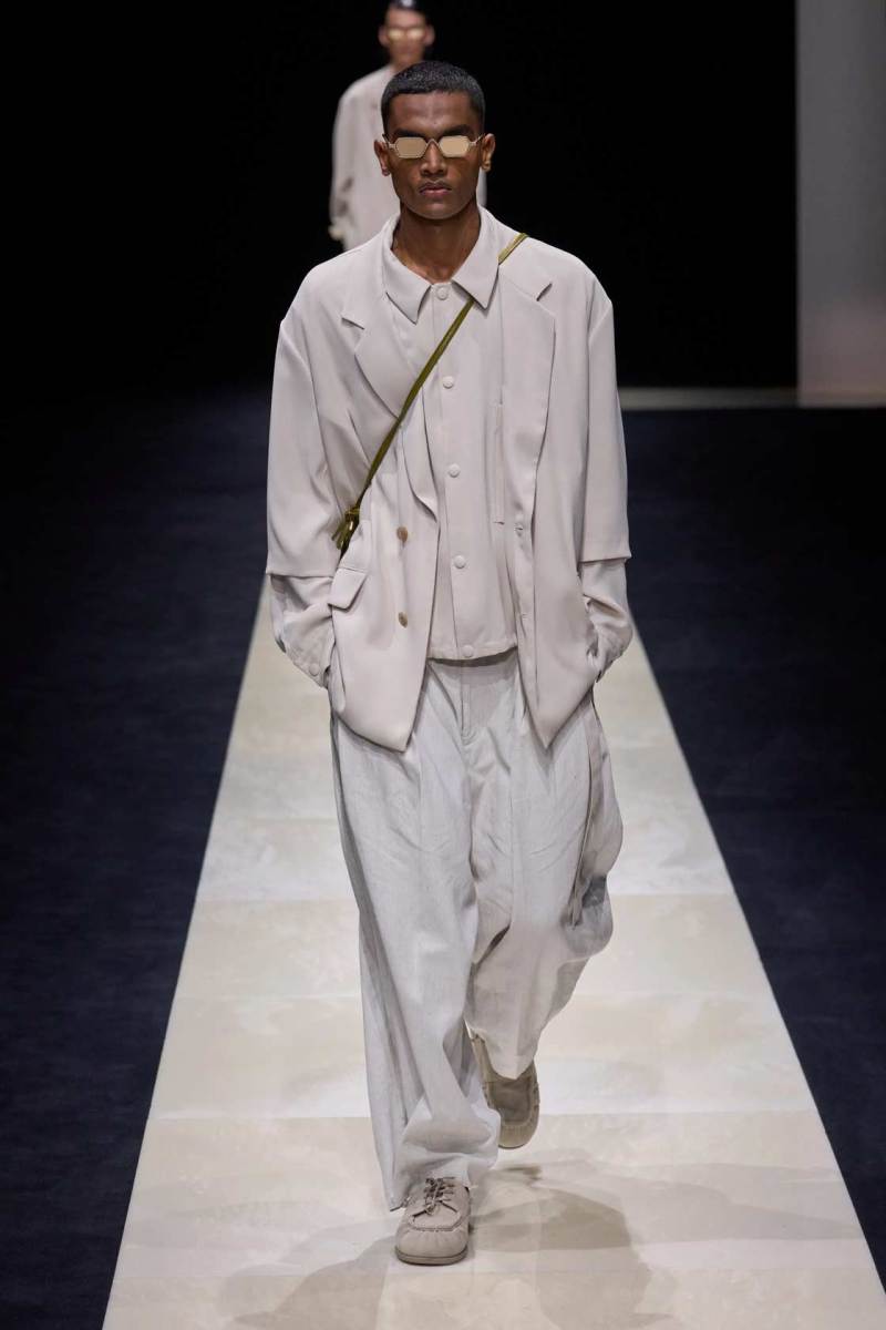 Giorgio Armani lascia come ogni anno a bocca aperta sfoggiando morbide giacche oversize, casacche di lino, pantaloni indiani da rajah, gilet e papaline. La palette per l’uomo rimane su toni classici, bianco-grigio freddo-ecrù, come a richiamare quello scatto in primo piano di Tom Munro, locandina della sua storica mostra presentata al Guggenheim di New York nel 2000 e che a breve ospiterà nuovamente l’inaugurazione di uno dei nuovi stabilimenti del celebre stilista.