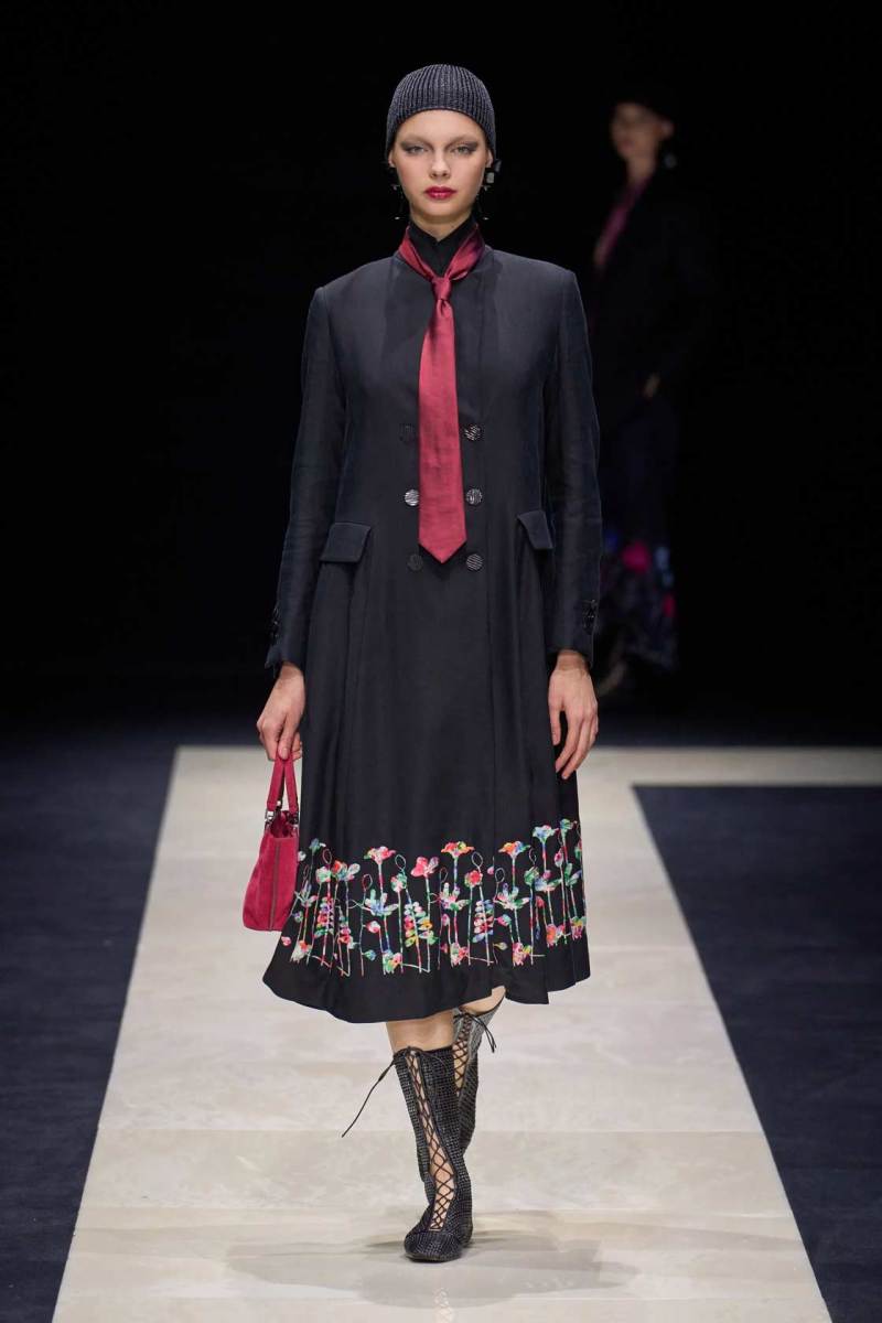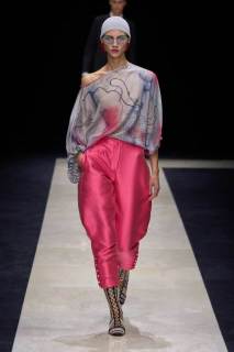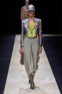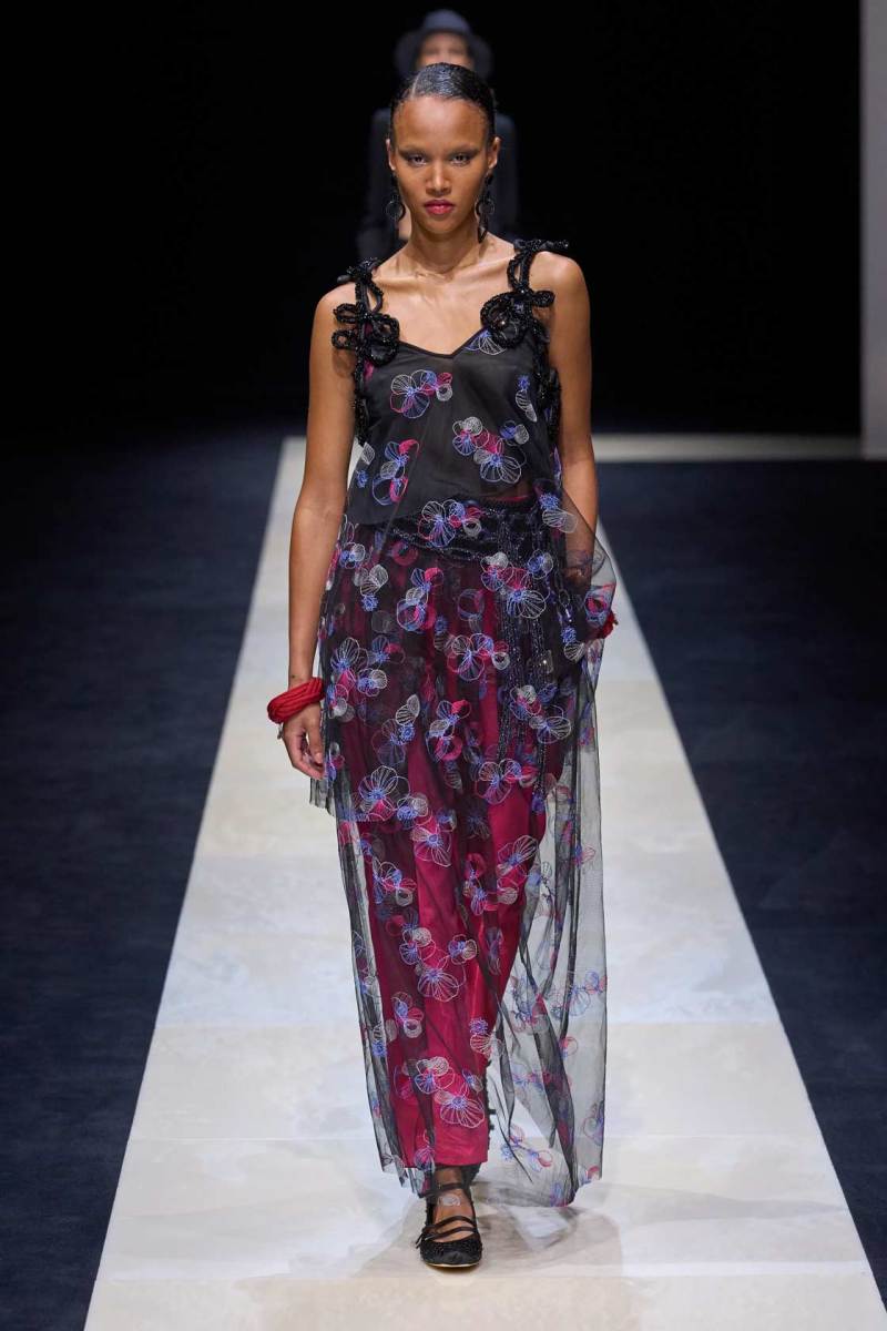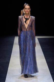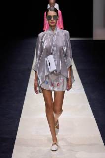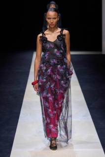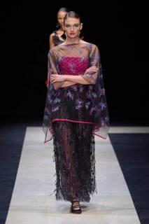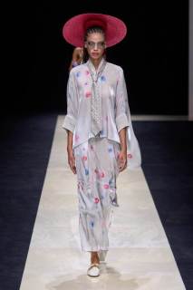 I materiali utilizzati denotano una ricerca intensa e attenta, troviamo lane leggerissime, reti, ricami colorati, stampe floreali e minuziose applicazioni di strass e grandi paillette, un lavoro meticoloso e degno del maestro. I look sono un grande e travolgente inno alla classe e alla finezza che da sempre lo contraddistingue come uno degli stilisti più all’avanguardia e dall’impronta stilistica decisamente unica, rara.