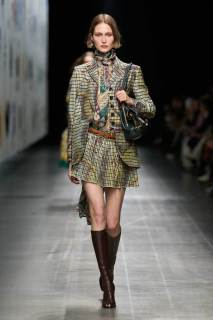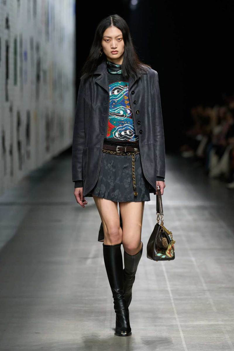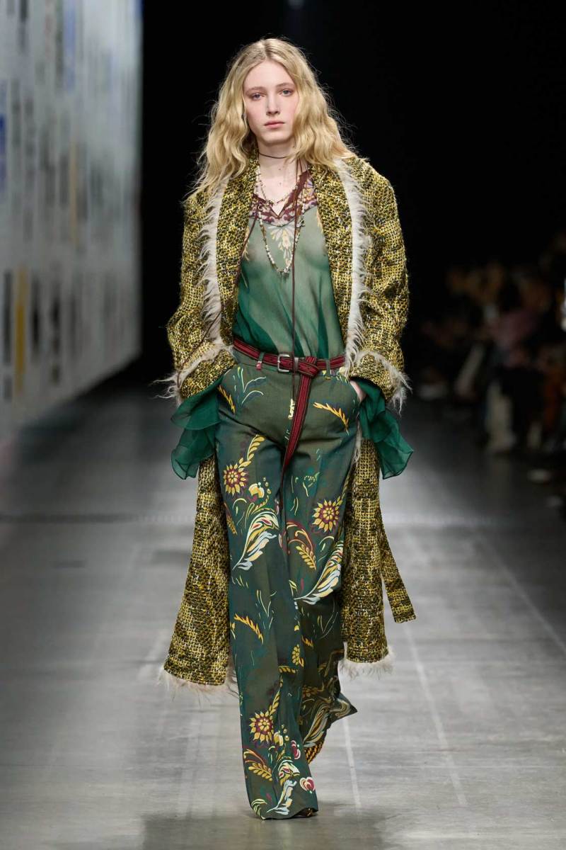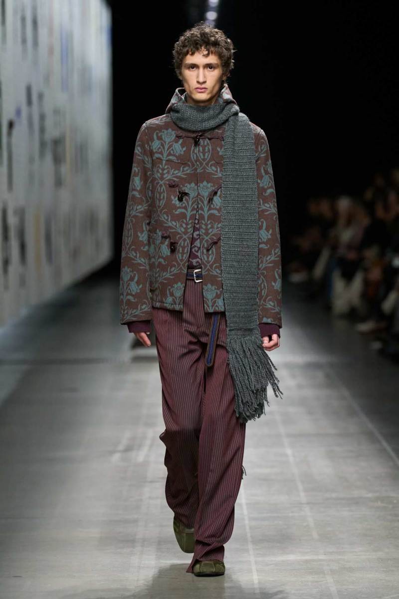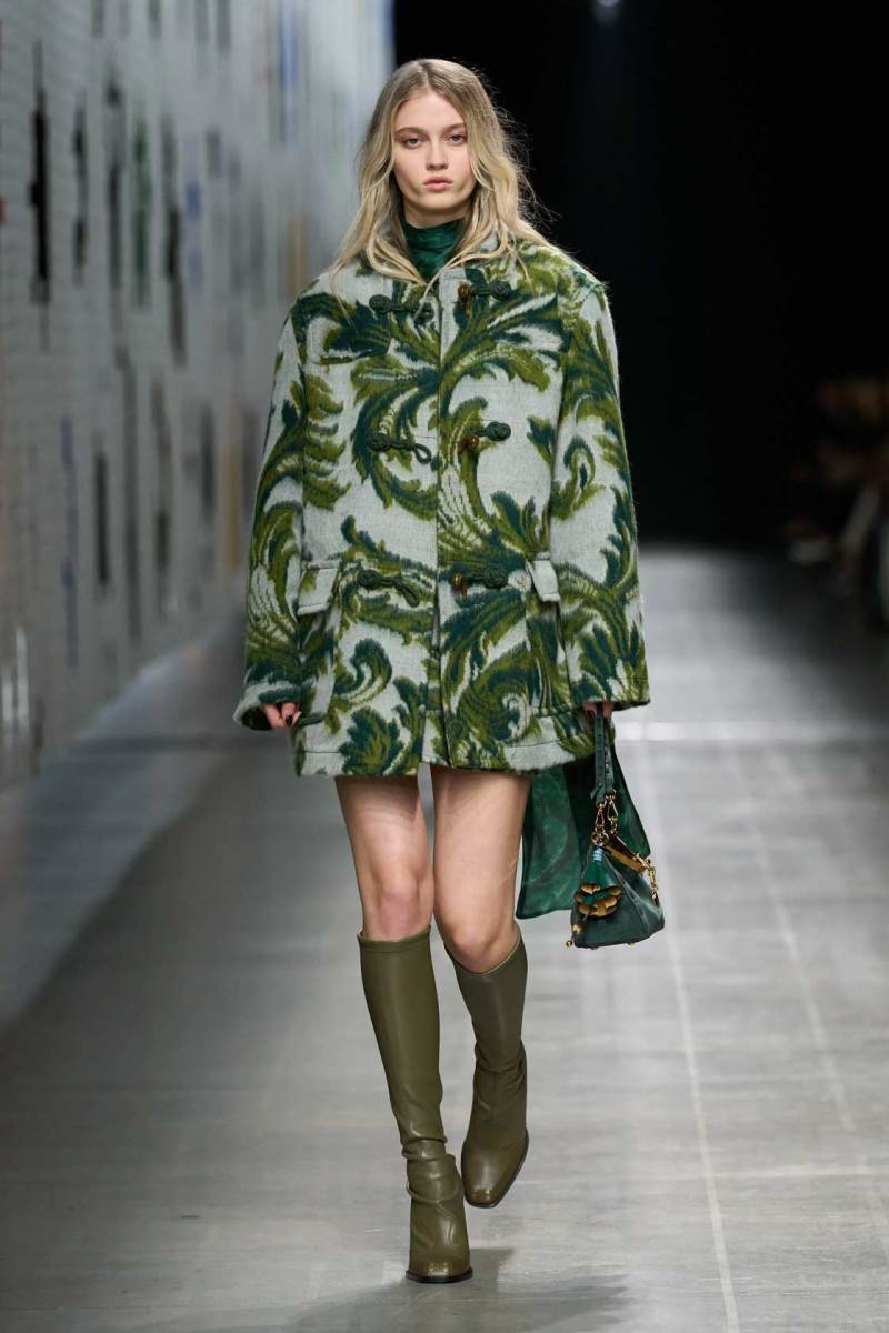 La collezione Etro AI 2025-26 ha raccontato una storia di incroci culturali, in cui elementi provenienti da tradizioni diverse si incontrano per creare un linguaggio nuovo e vibrante. Le influenze orientali, le geometrie etniche, i motivi floreali sono stati mescolati con una visione tutta contemporanea, in un gioco di contrasti che diventa una riflessione sulla bellezza delle diversità. Le giacche ricamate, i cappotti in tessuti pregiati e gli abiti fluidi creano una narrazione di eleganza che è tanto cosmopolita quanto affascinante.