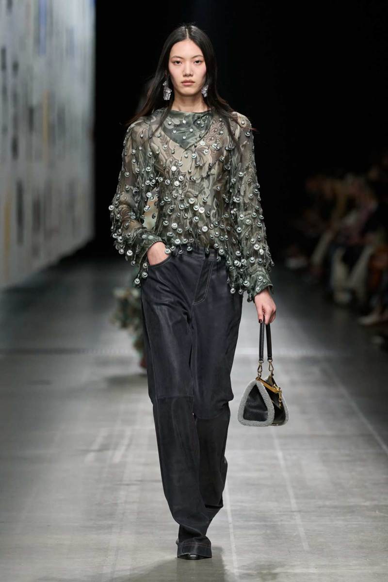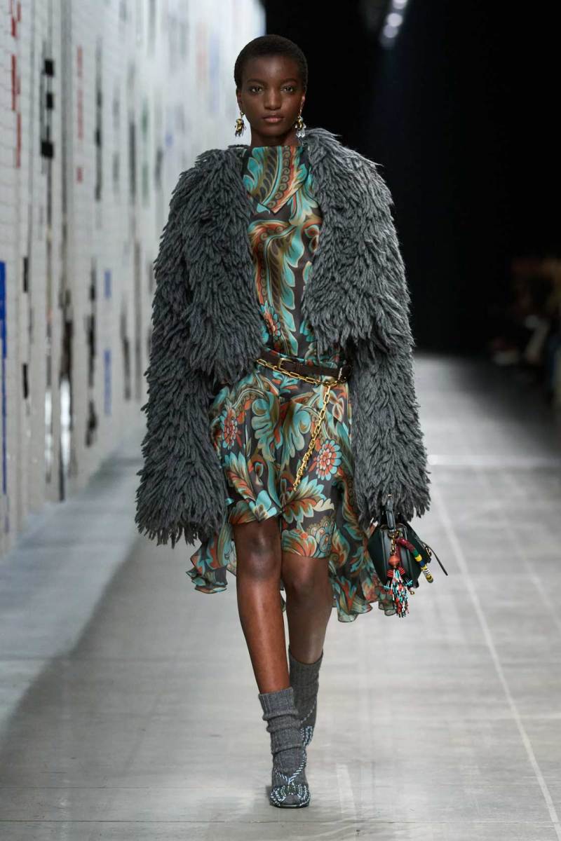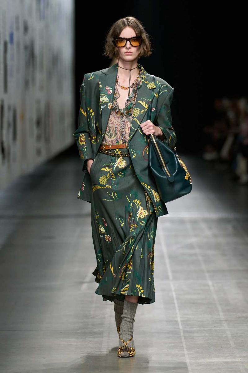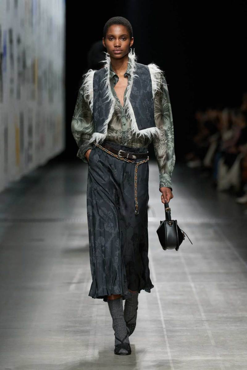 I dettagli sono la vera chiave della collezione. Ogni capo sembra un piccolo capolavoro di artigianato, dove ricami intricati, motivi paisley e fiori stilizzati sono combinati con tagli moderni e silhouette pulite. Etro ha saputo reinterpretare i suoi storici pattern in chiave moderna, giocando con le texture e i materiali: la lana si mescola alla seta, la pelle con il velluto, in un connubio che dà vita a una collezione estremamente sofisticata e al contempo indossabile.