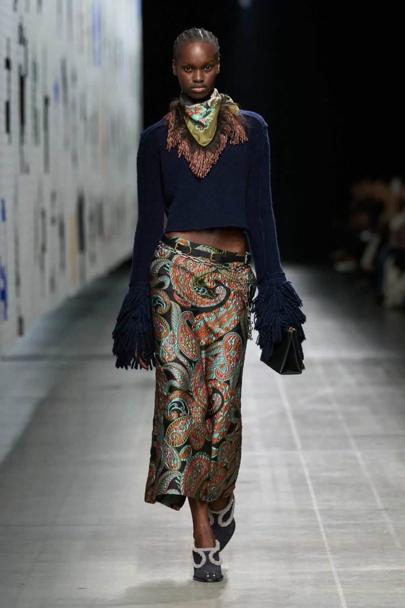 La collezione Etro AI 2025-26 ha raccontato una storia di incroci culturali, in cui elementi provenienti da tradizioni diverse si incontrano per creare un linguaggio nuovo e vibrante