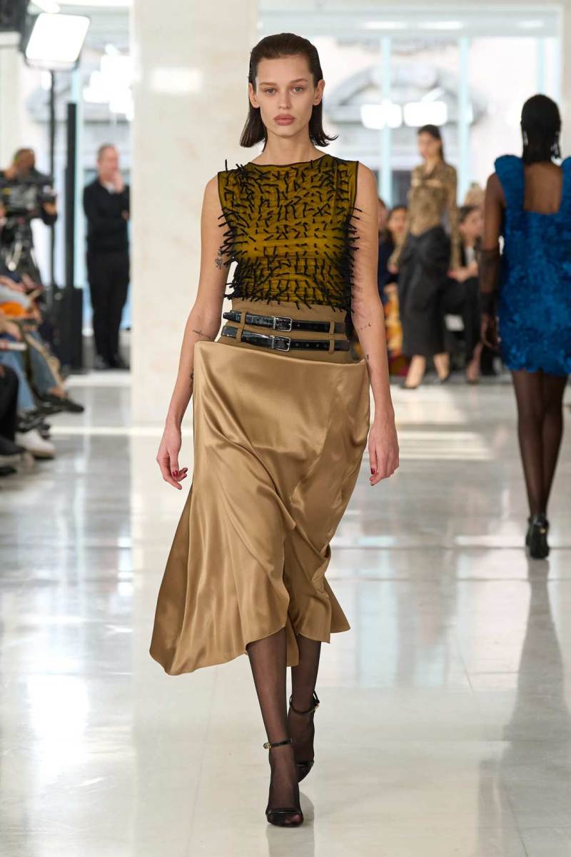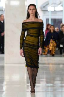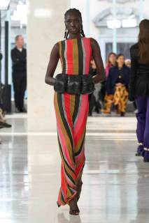 In passerella, abiti Twist in velluto, altri che richiamano lo stile afro, cuciti a mano; abiti morbidi plasmati sul corpo e adornati da righe che slanciano la figura; poi ancora, stampe animalier e grandi effetti di tridimensionalità. Tra gli accessori, i tacchi a spillo, i lunghi guanti in tulle e i collant colorati. La collezione, intitolata Speed, richiama la velocità della moda. Bisogna essere rapidi per creare una collezione, ma anche per seguire le tendenze e stare al passo con i tempi. Il tutto è all’insegna di equilibrio e coolness.