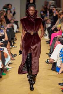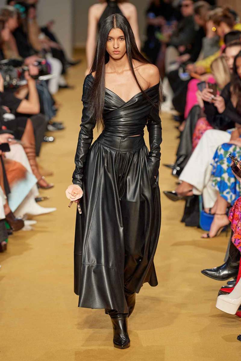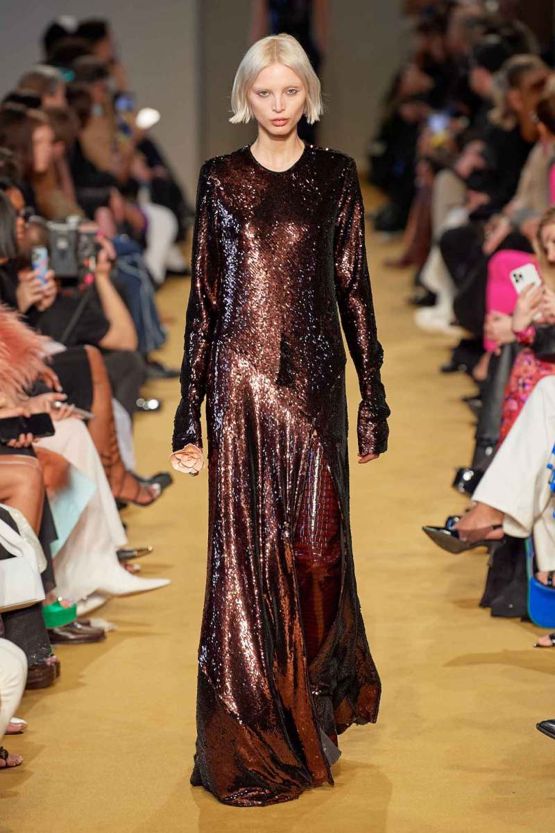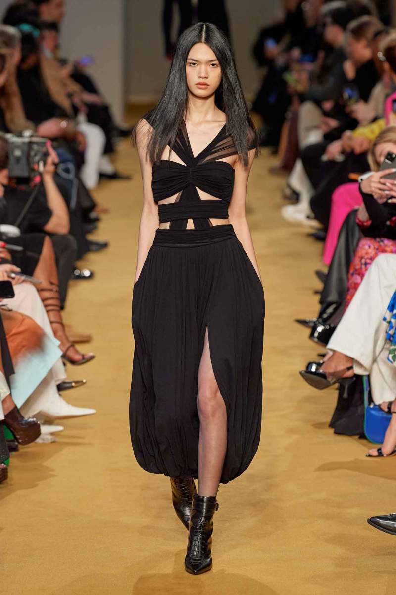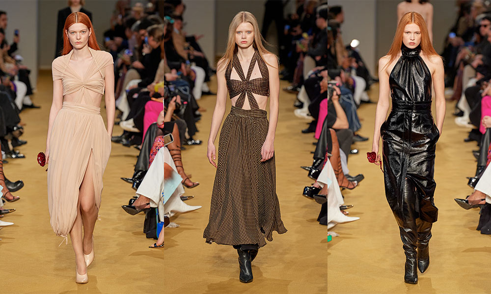 La nuova collezione AI 2023-24 realizzata da Lorenzo Serafini per Philosophy definisce una donna cosciente della propria sensualità e femminilità. Il designer crea dei capi che ricercano una unione tra raffinatezza e seduzione, a cui si aggiunge un tocco di erotismo. Ciò è pienamente percepibile negli spacchi sui fianchi, negli scolli profondi, nelle schiene nude e nei giochi di trasparenze di un paio di abiti.