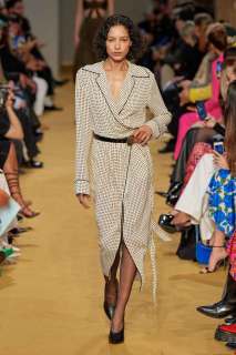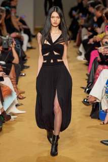 Il leitmotiv che percorre tutta la collezione realizzata da Lorenzo Serafini è una femminilità delicatamente seducente e romantica. Anche le silhouettes rimandano a un’idea di sensualità: sono infatti a clessidra, in una forma strutturalmente aggraziata che esalta i corpi e si modella finemente sulle figure.